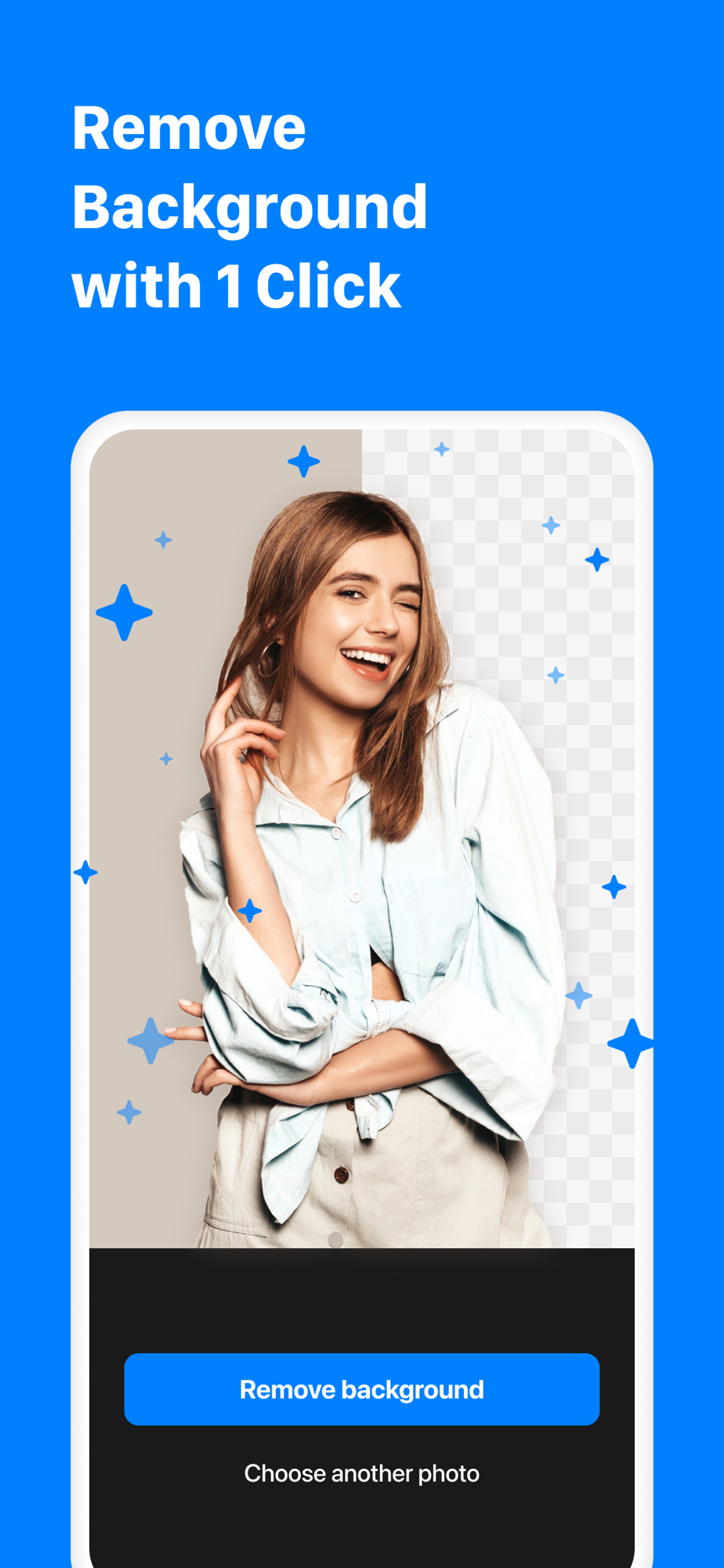 Just select a photo from album or take a picture to remove its background simply with 1 click.