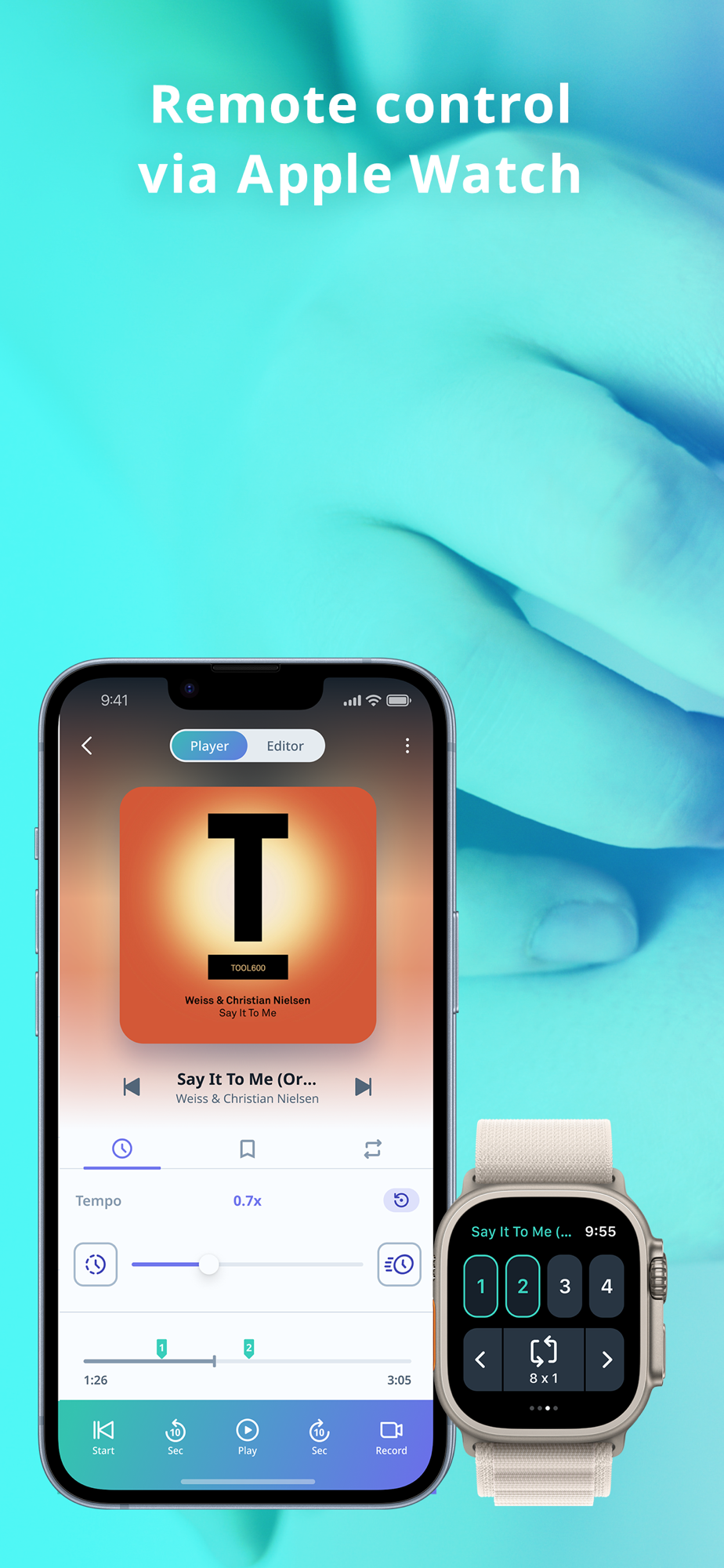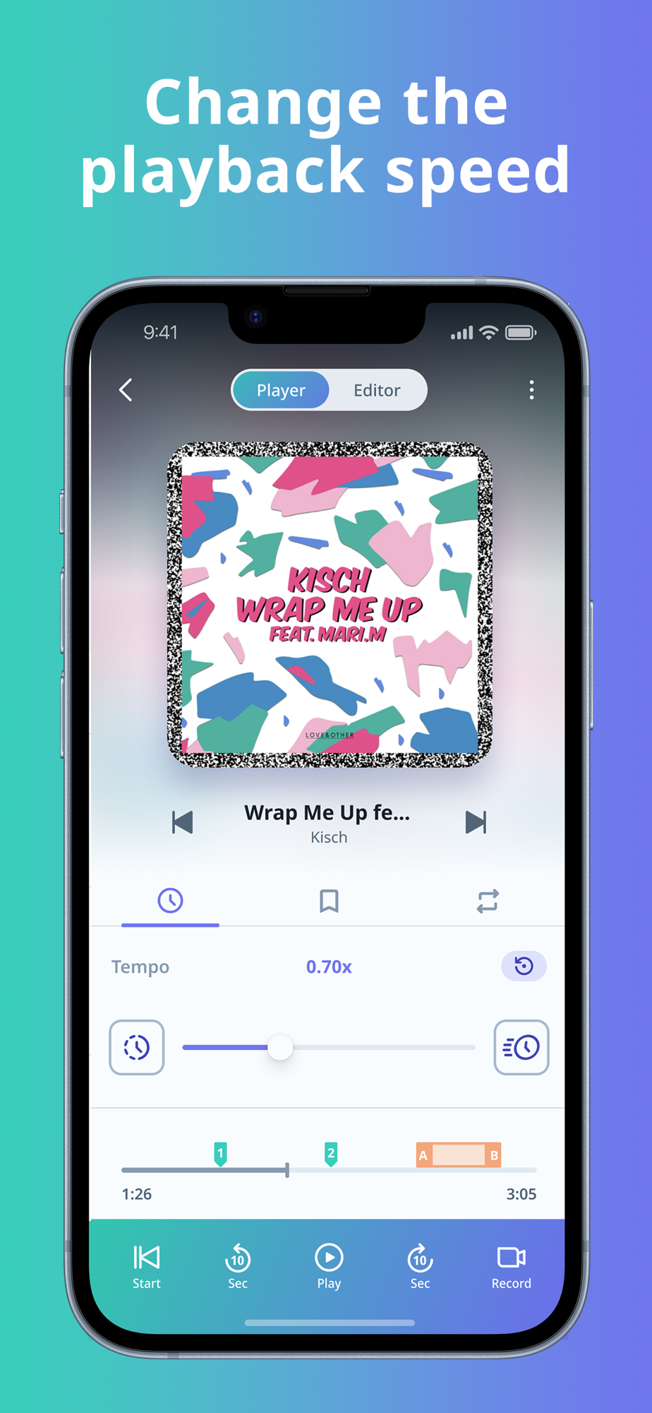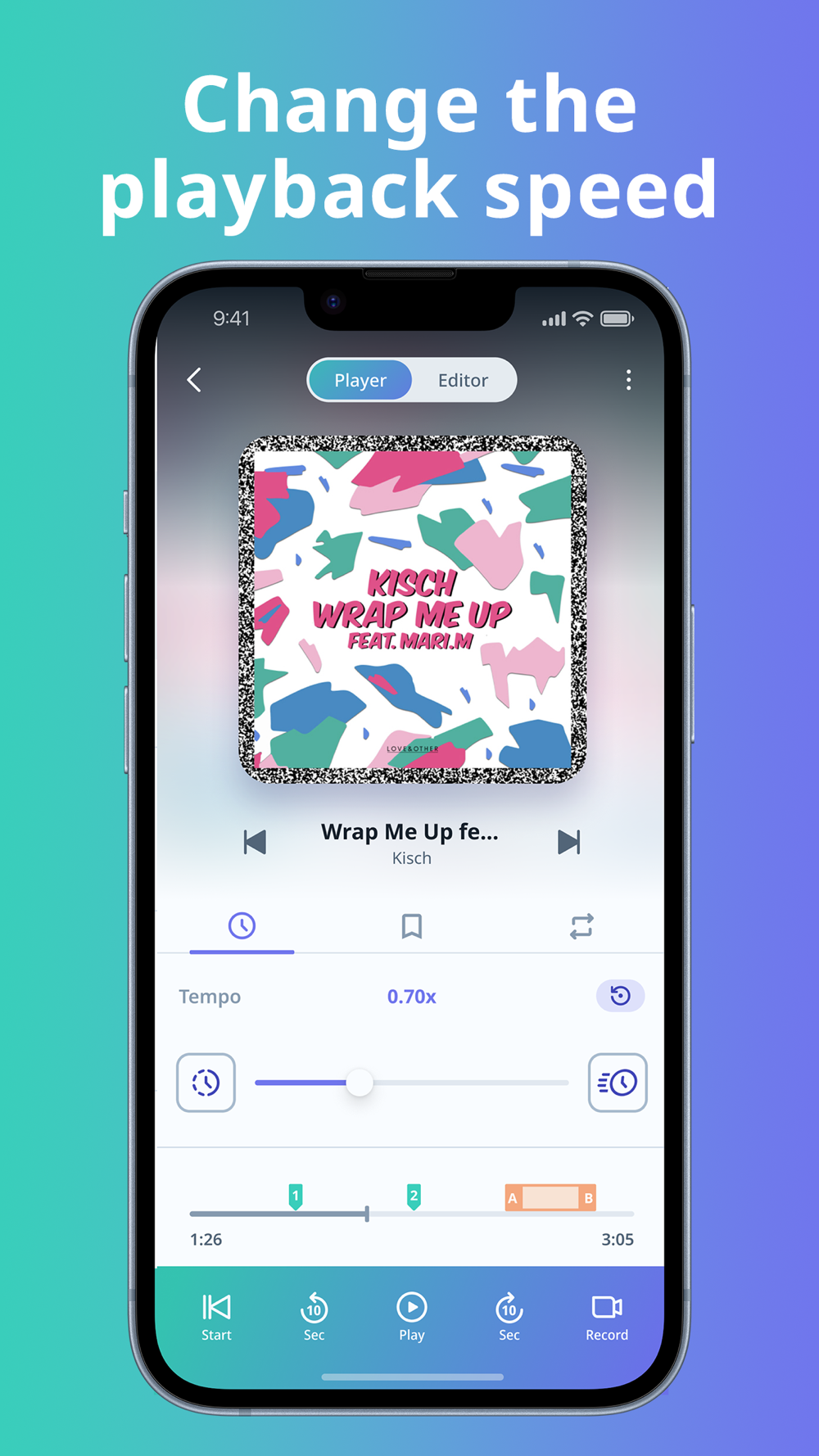 Mark and play from your favorite position in a song.