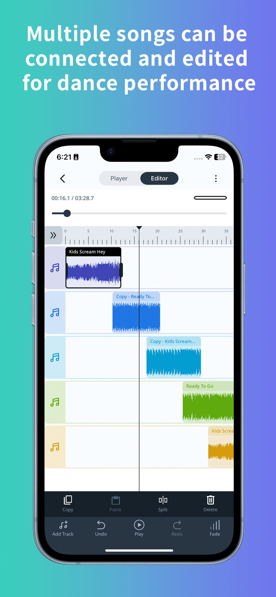 ・It supports 20 tracks and you can edit songs for dance performance, such as mixing multiple songs together.