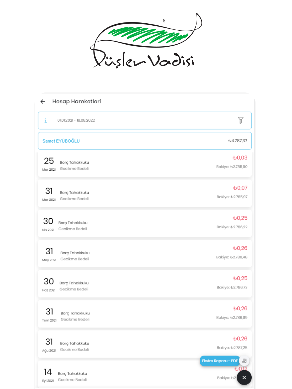 • Cari Hesap Hareketleri; bölümünüze yapılan tahakkukları , güncel borç durumunu ve geçmiş dönemde gerçekleşen ödemelerinizi görüntüleme,