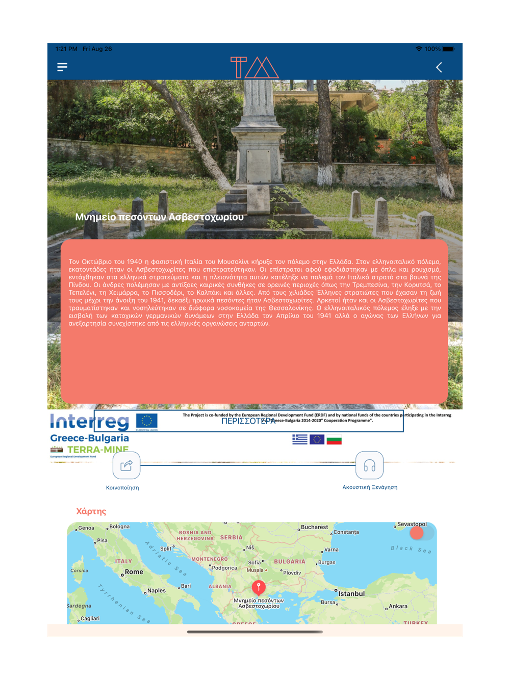 As part of the project, a mobile application was developed for iOS operating systems, using beacons and QR codes on a plexiglass base, which have been installed in areas near the quarry area, giving users the following possibilities to: