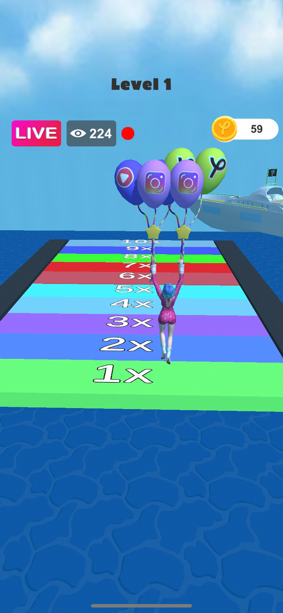 In this streamer live runner game, you have to make the choices to create the right content and filters every day to get millions of followers daily and become a famous influencer to earn money in each level of this live streaming game.