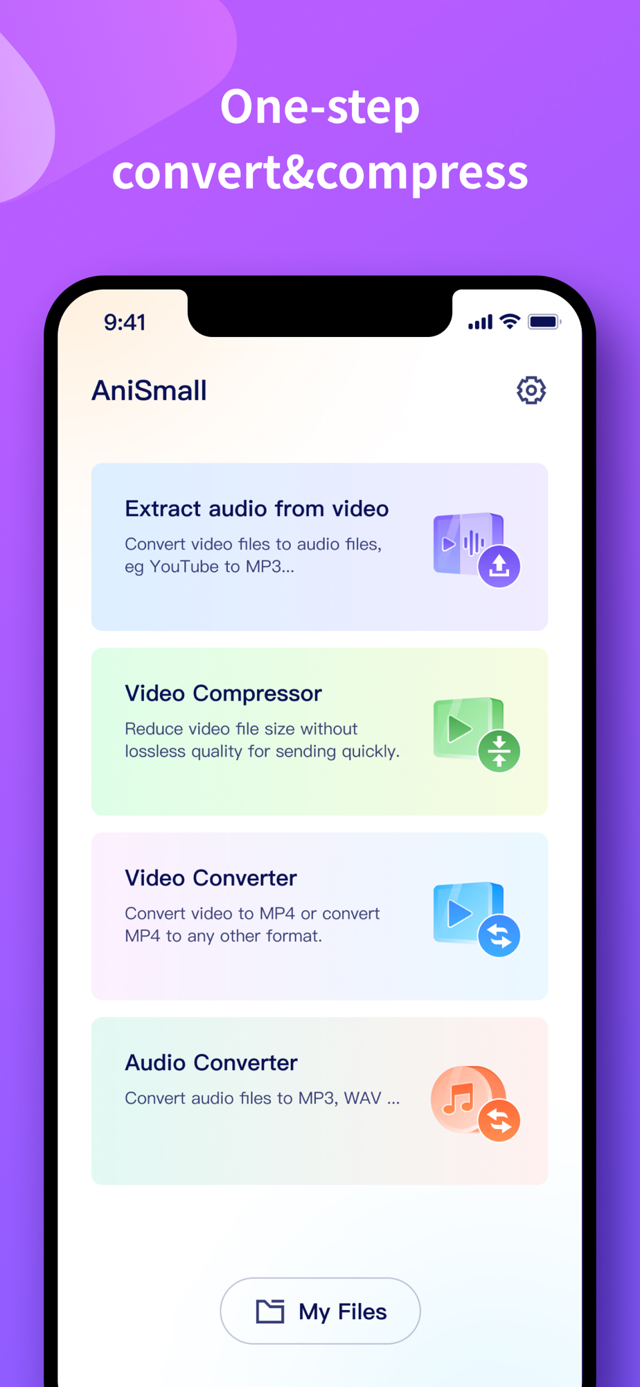 AniSmall is a simple tool for converting and compressing media files. It supports four main functions: Extract audio from video, Video Compressor, Video Converter, and Audio Converter. Quickly convert your videos to nearly any video or audio format!