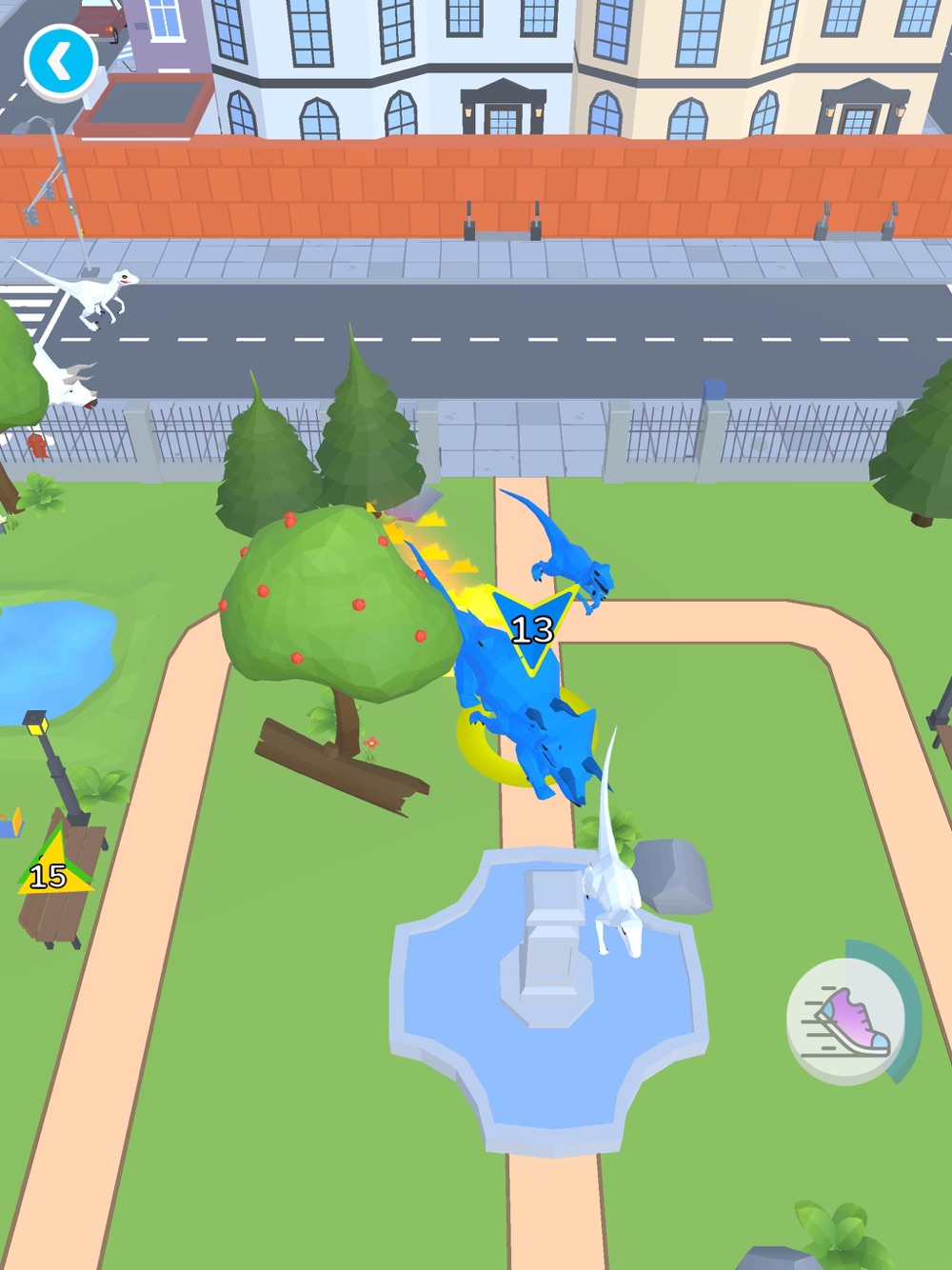 The city is invaded by dinosaurs, and you're one them! Recruit many allies in your crew, and beat the other factions to become the number one!