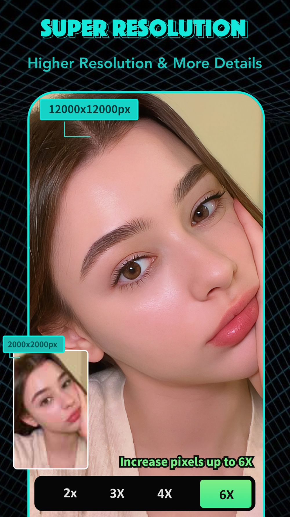 AI image upscaler delivering enhanced detail and resolution by 600% without losing quality.