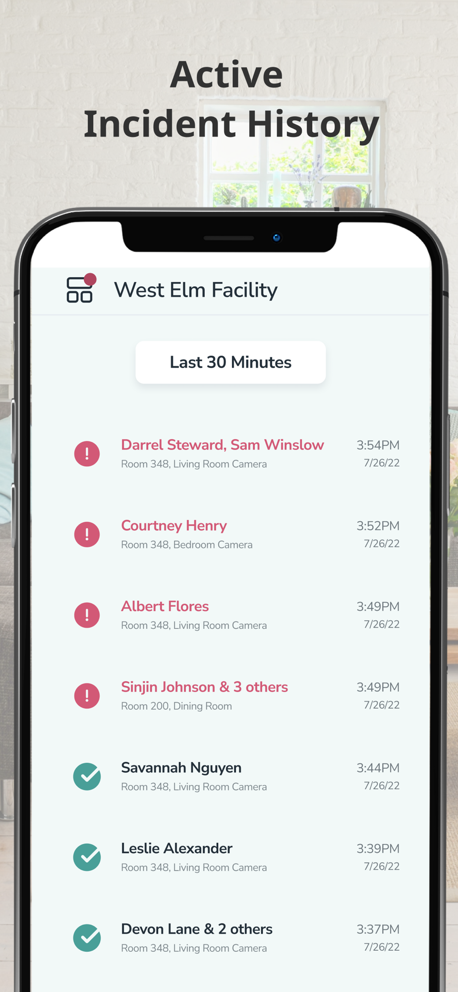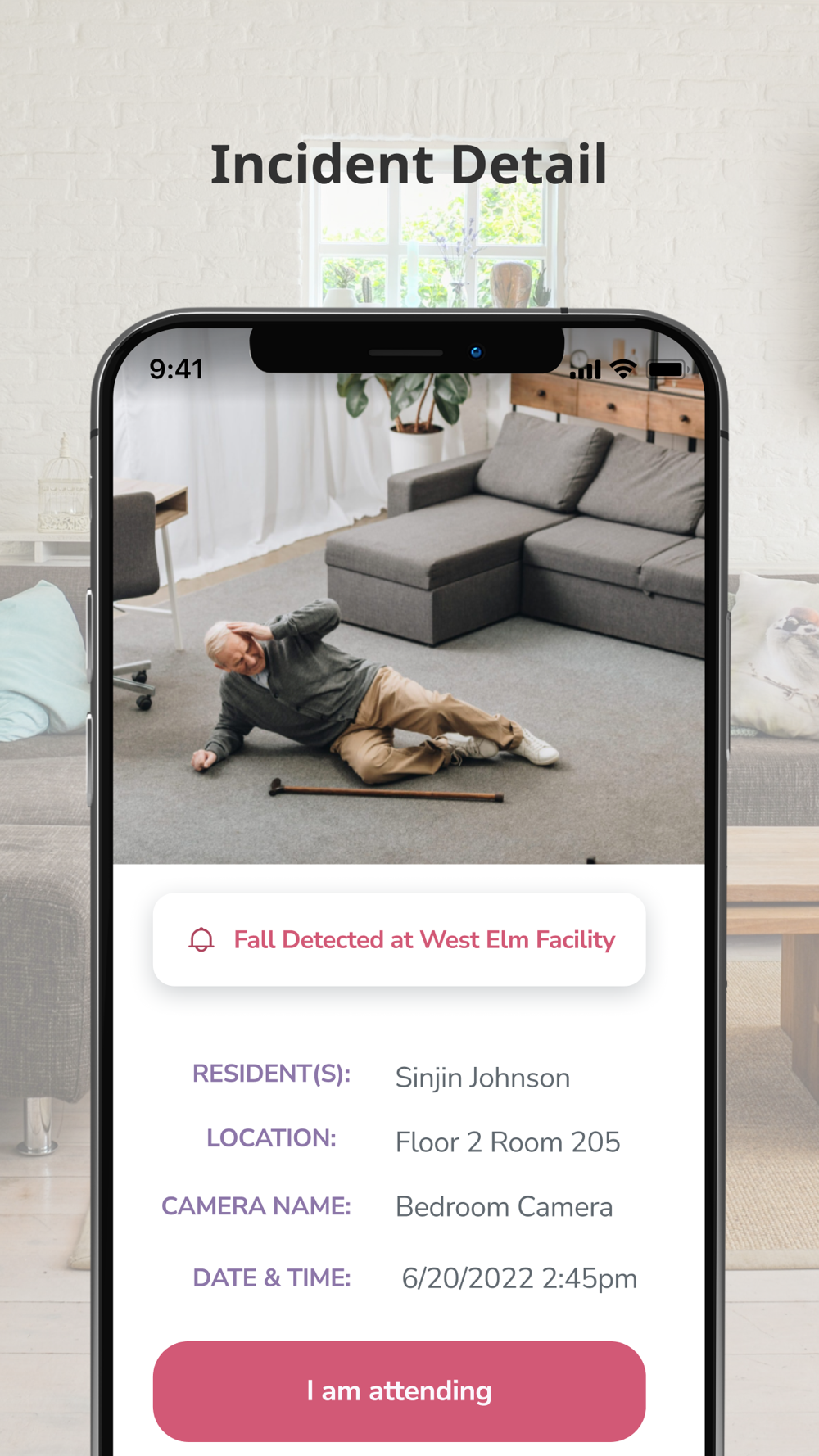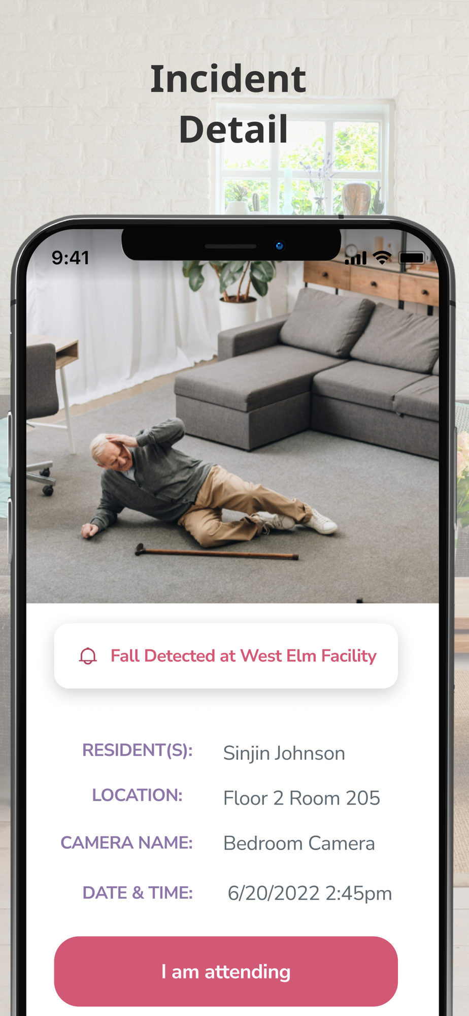 - View details of each incident along with an image snapshot taken around the time of the fall