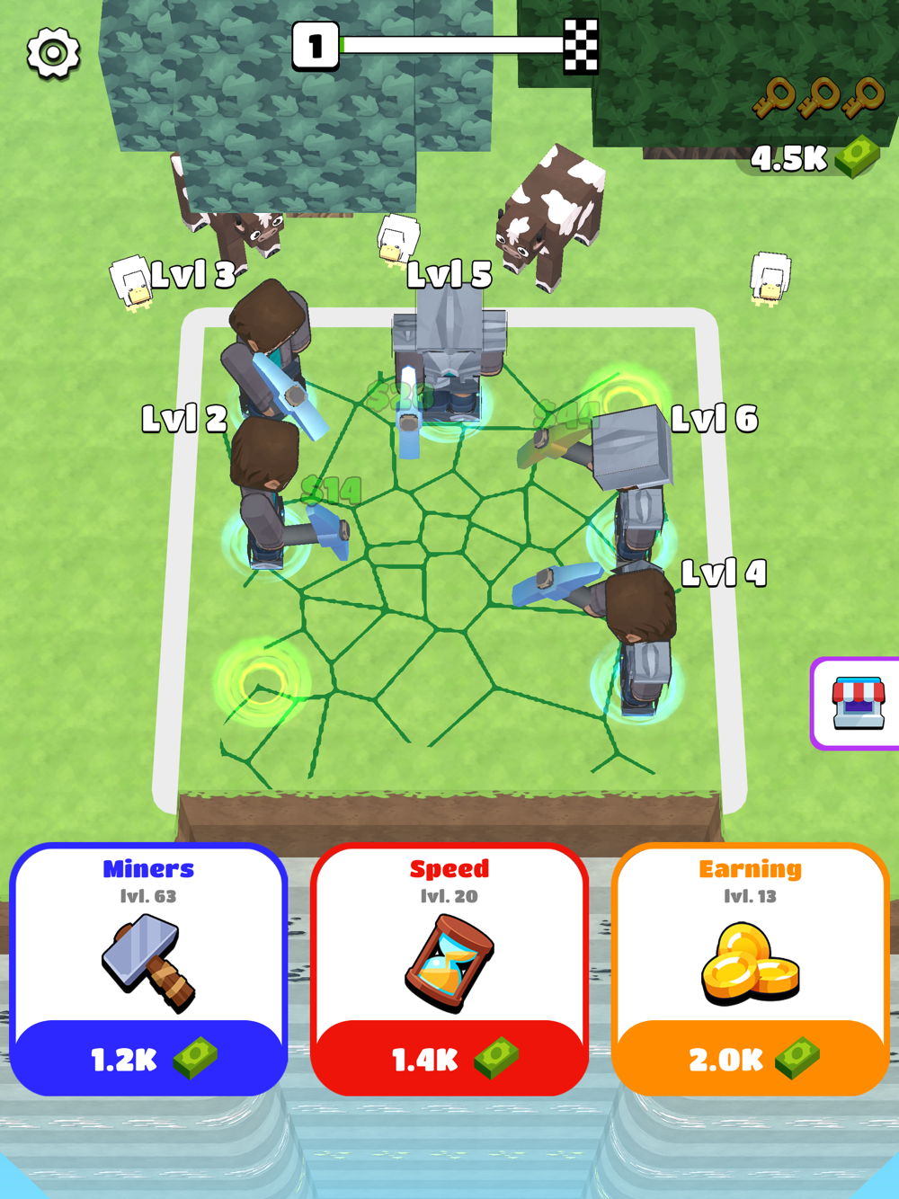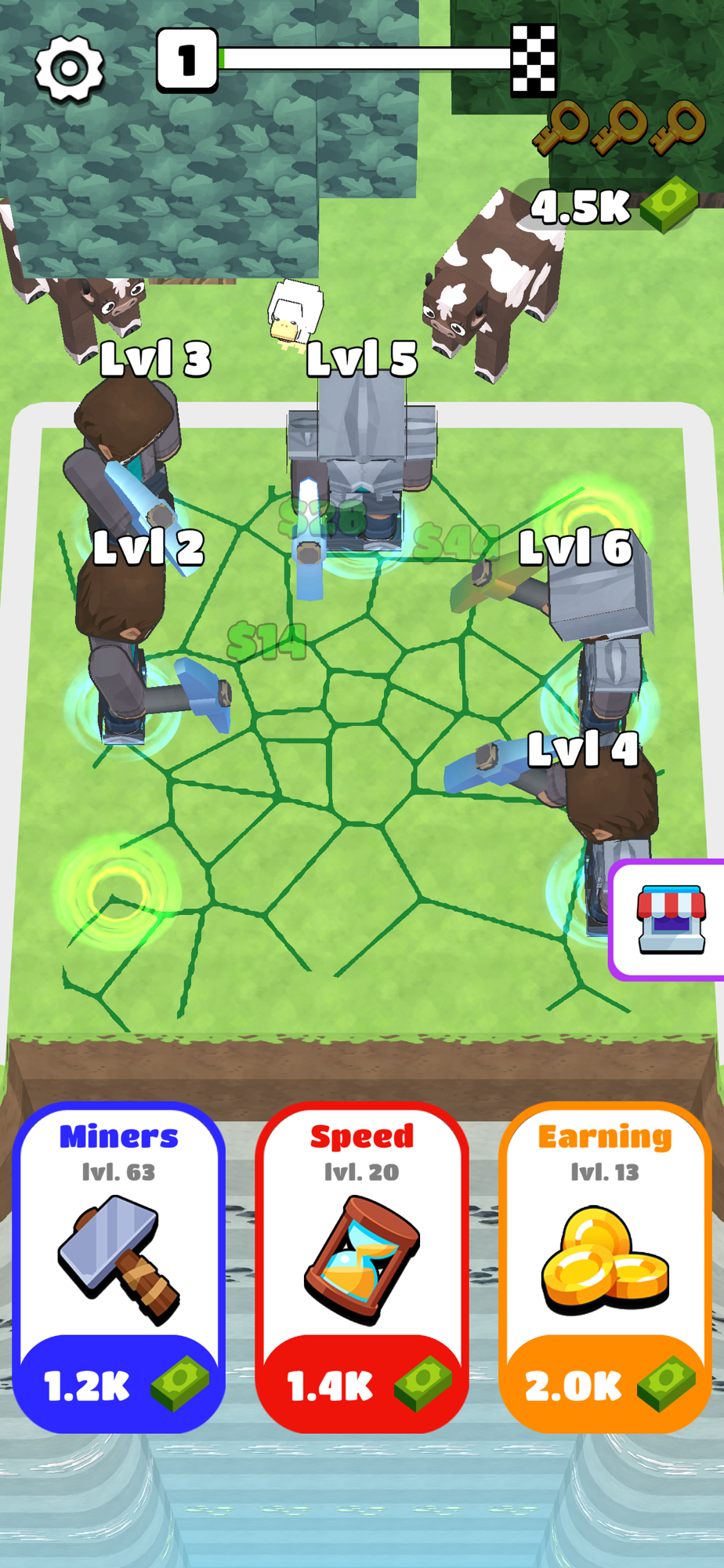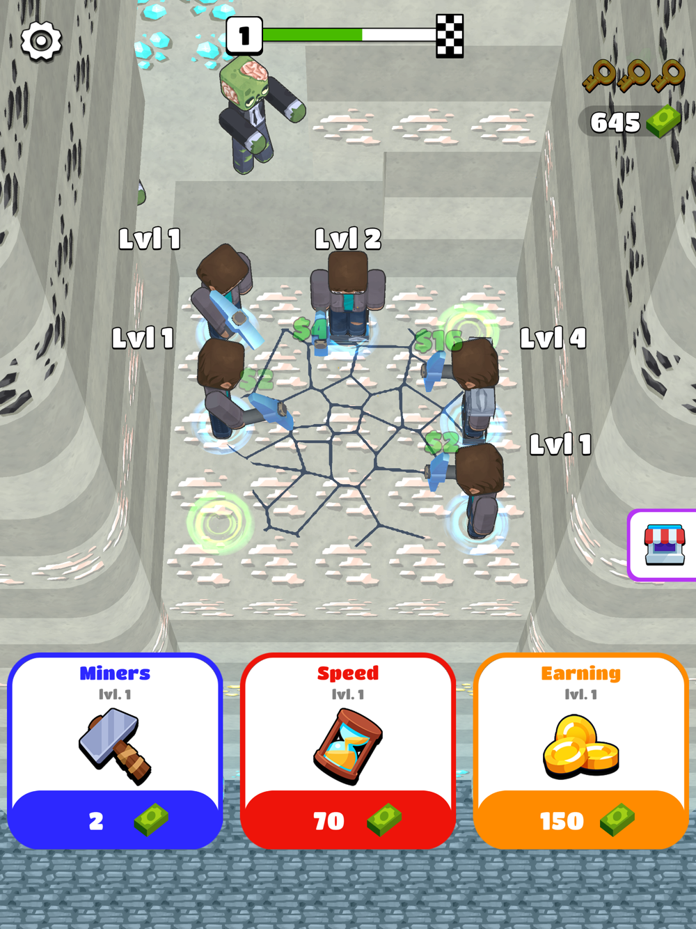 Start digging by hiring miners and making your first profits. Upgrade characters by merging them together to earn more and dig faster. But be careful, legends say there are monsters that live deep in the ground.