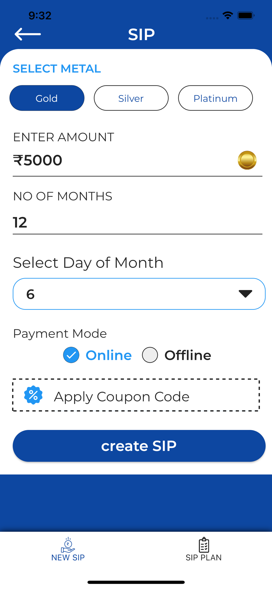 Customers can create an Monthly Saving Plan (SIP) in the App."
