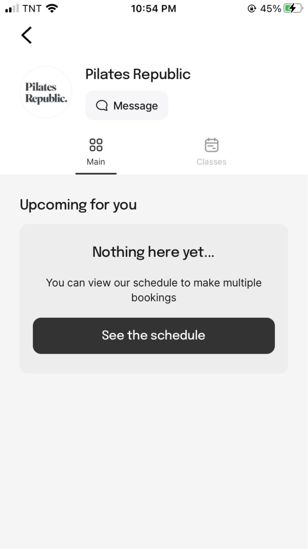 The Pilates Republic app makes it very easy for you to manage your Pilates Republic account, book into our classes and events, watch our on-demand content, and keep in touch with us. You can easily message us if you have a question or want to share something with them. You can also follow our public feed to see any announcements we make, promos we run, or content we share.