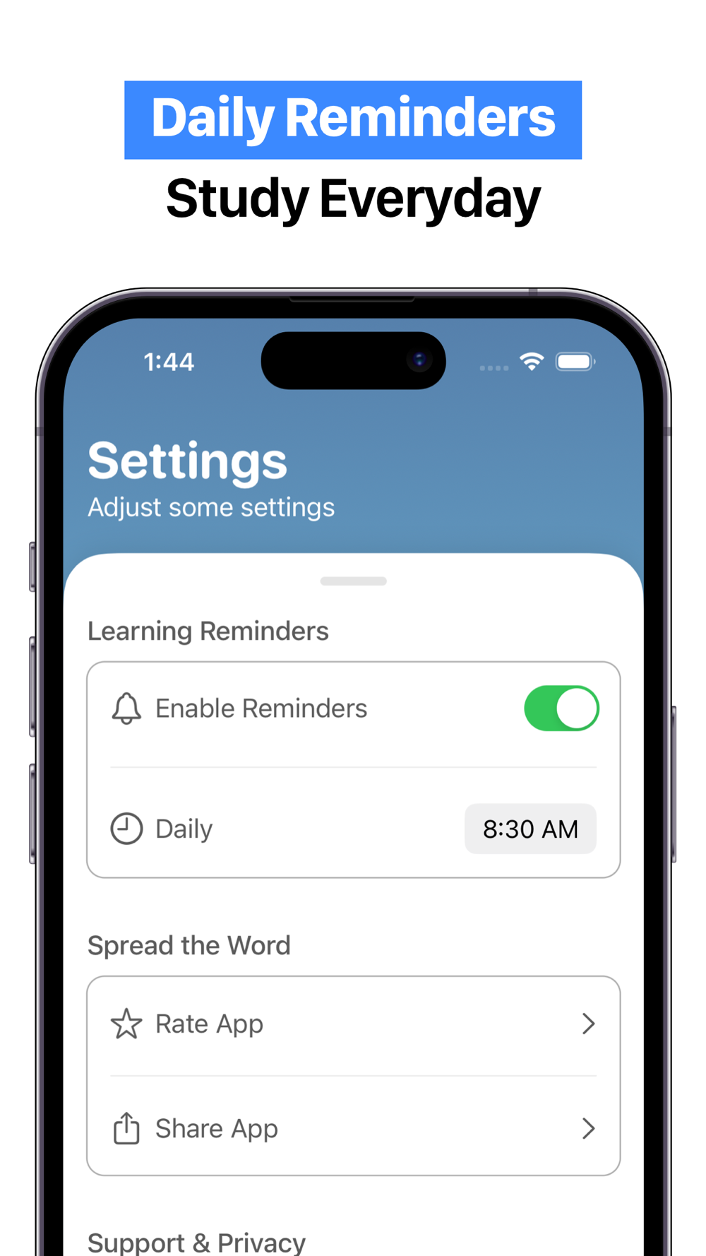 - Daily Reminders is a great helper for you so you don't miss a day studying for your exam