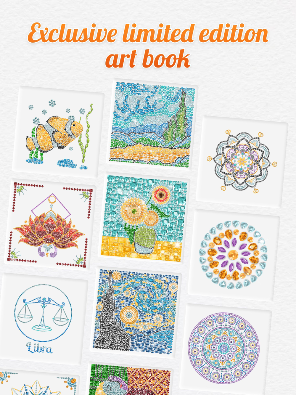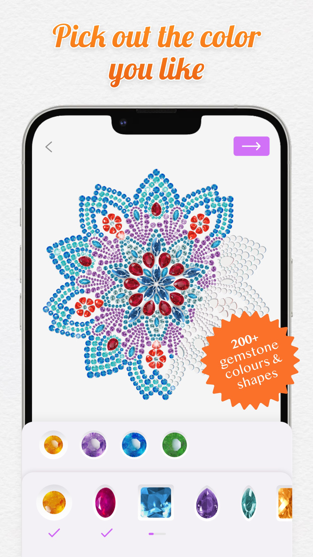 Just with one finger, you can paint by number, choose the gems you like and finish the masterpieces!