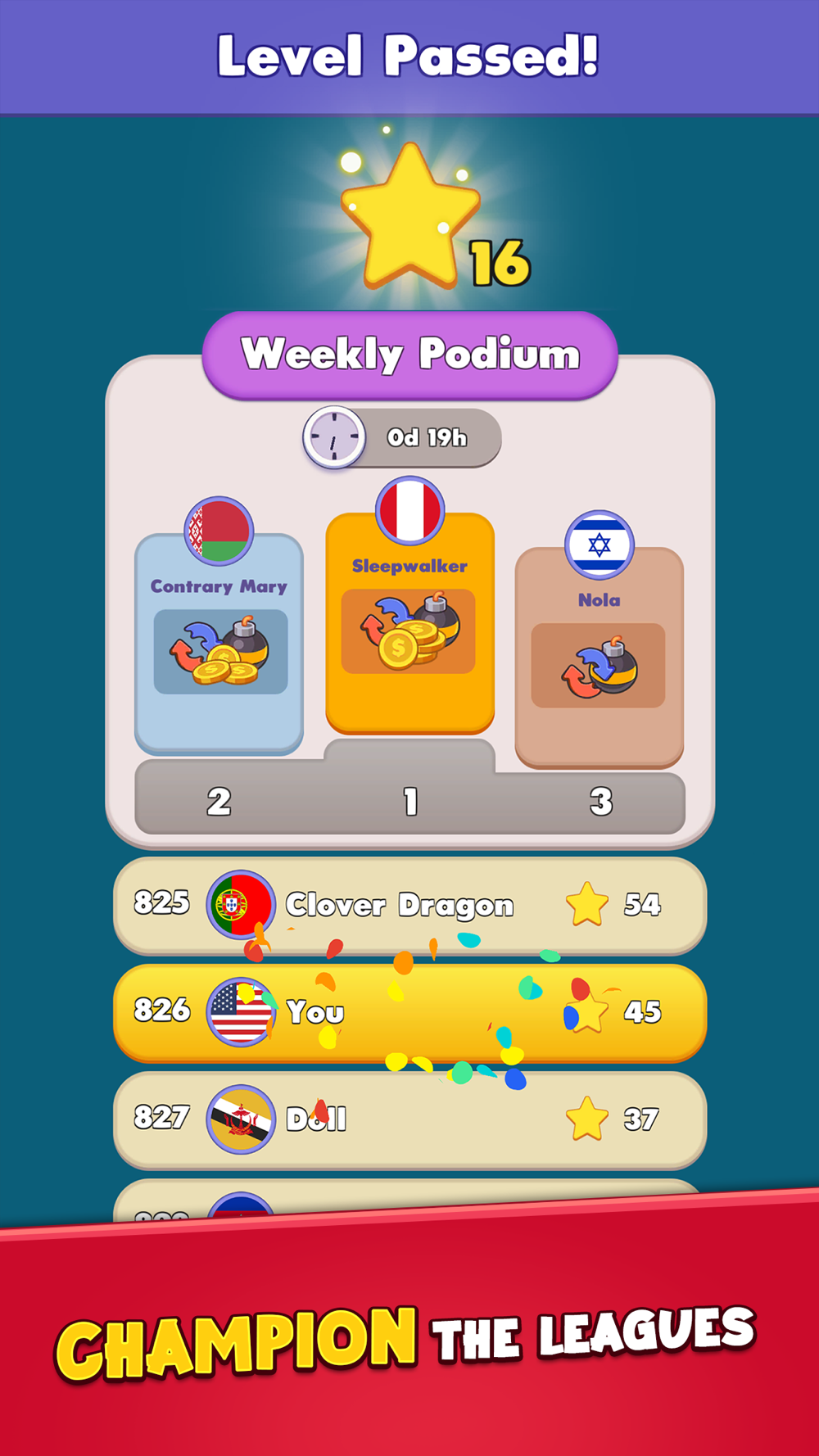 Use boosters to help you clear the whole board and climb up the leaderboard to become the number one in the world and take such big reward packs.