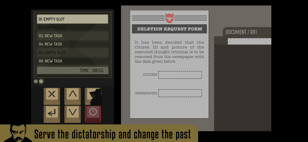 In Monthly Dystopia, you need to find a way to survive in an authoritarian world. You can serve the dictatorship by being a model citizen or you can try to flee the country by cooperating with the Resistance. You live under a regime in which love is forbidden and using words banned by the Party is punishable by death. Choose your words wisely if you don't want to commit a thought crime. Remember, there's always a screen watching you. The paycheck from your job at the ministry editing the past is barely enough to buy the food needed to keep you alive, so it is crucial that you find a way to flee this dystopia where even thinking is forbidden.