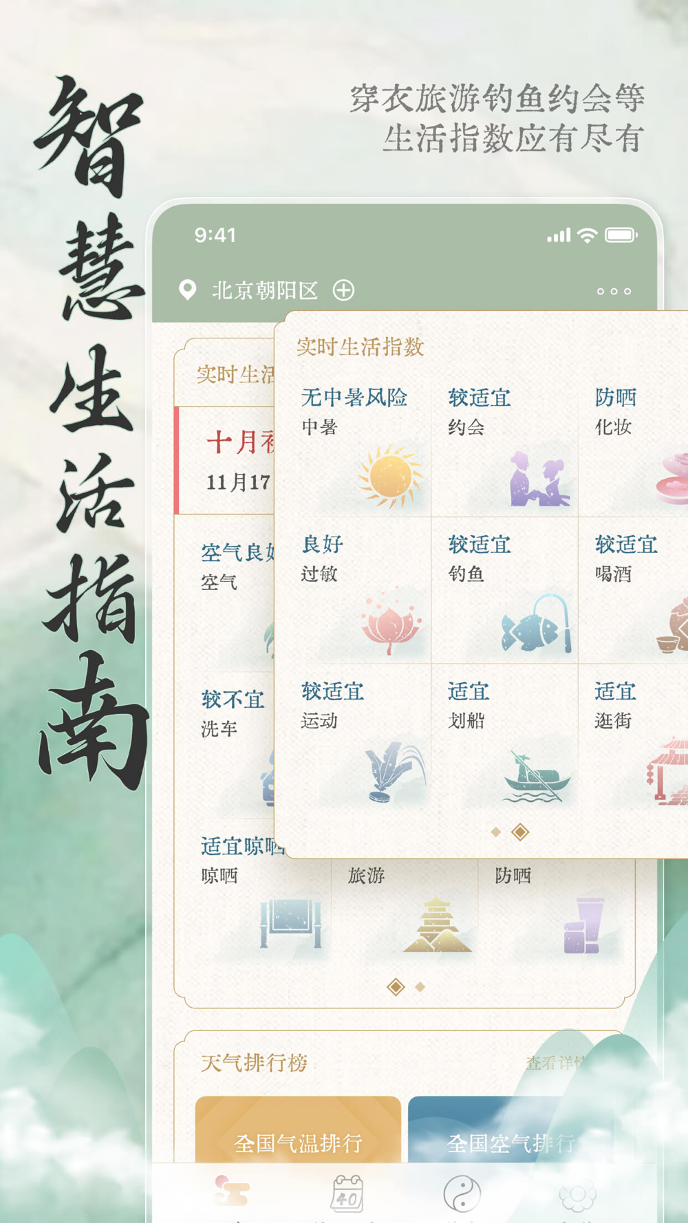 *齐全的生活指数:穿衣旅游钓鱼约会等生活指数应有尽有