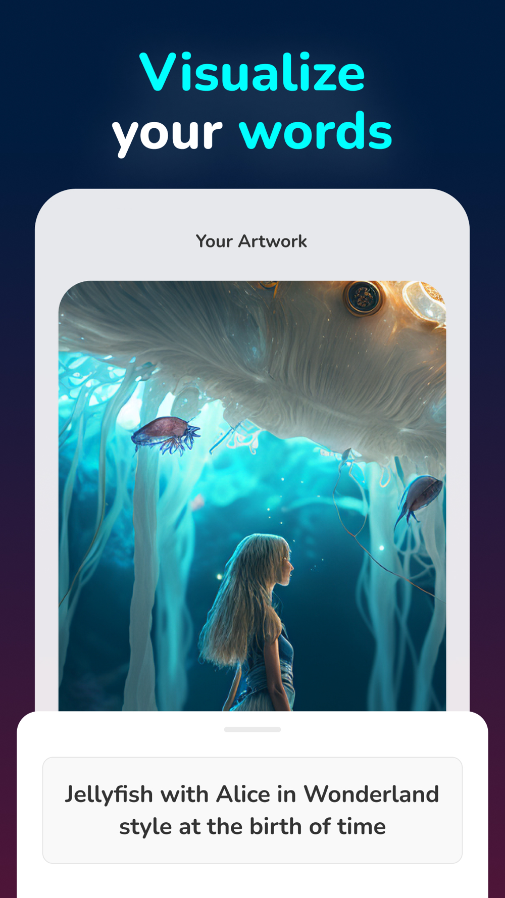 Alice transforms your prompts and art style choices into stunning digital paintings.