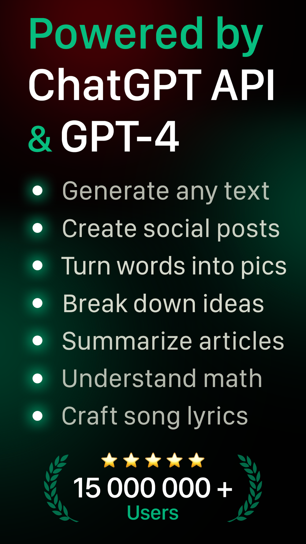 Simply type in your request, and the app will go through the tedious writing routine for you. Start generating creative content and upgrade your writing with our universal AI chatbot here and now!