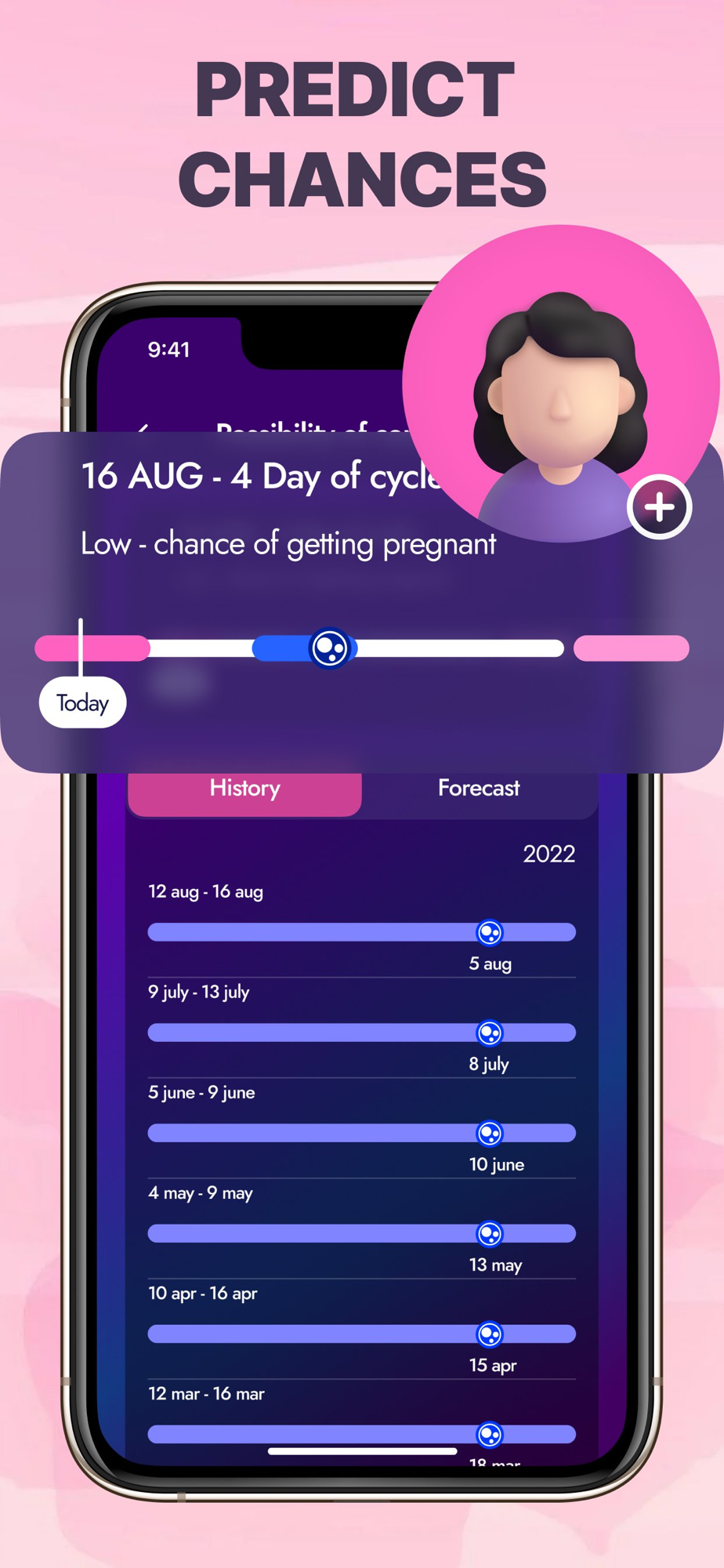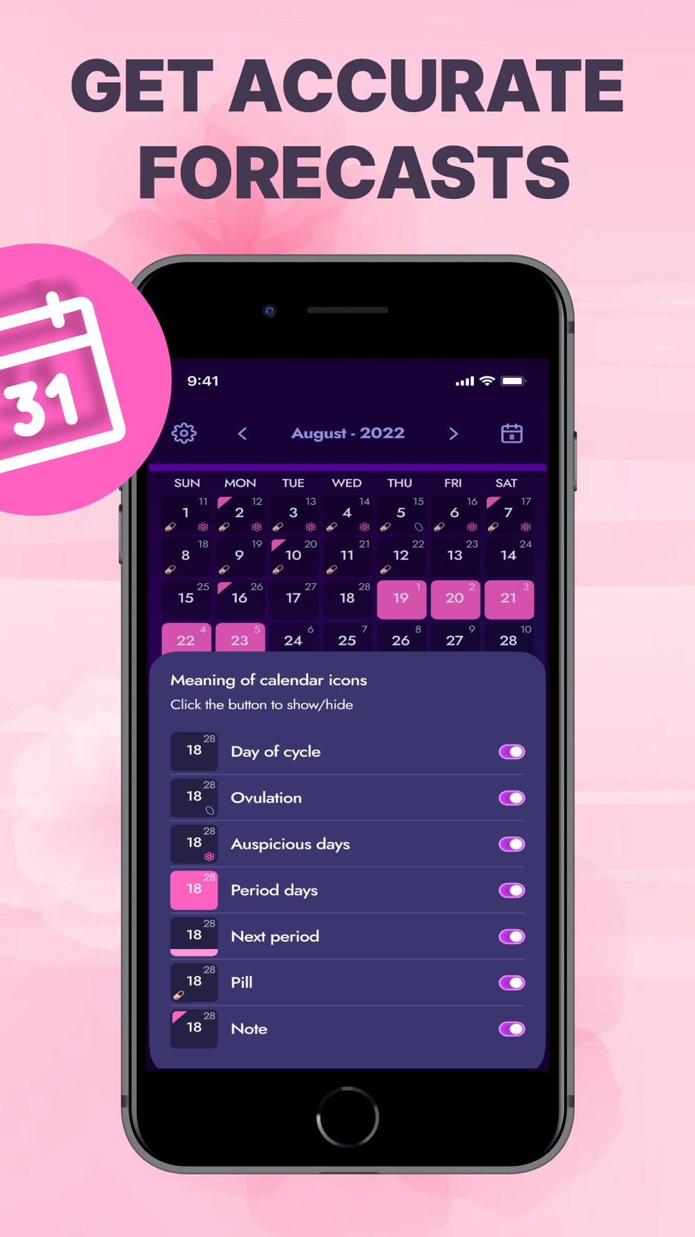 Make cycle adjustments where necessary and see detailed information about your cycle, including the number of days left and the ovulation time. With the in-built notepad, you can note symptoms, such as cramps, and other things in the phases of your cycle. Increase the chance of pregnancy by knowing when your fertility rate chances are high from the ovulation calendar. When you see the early signs of pregnancy, you can input these pregnancy symptoms in the notes. Easily manage your cycles with this cycle tracker on your mobile phone.