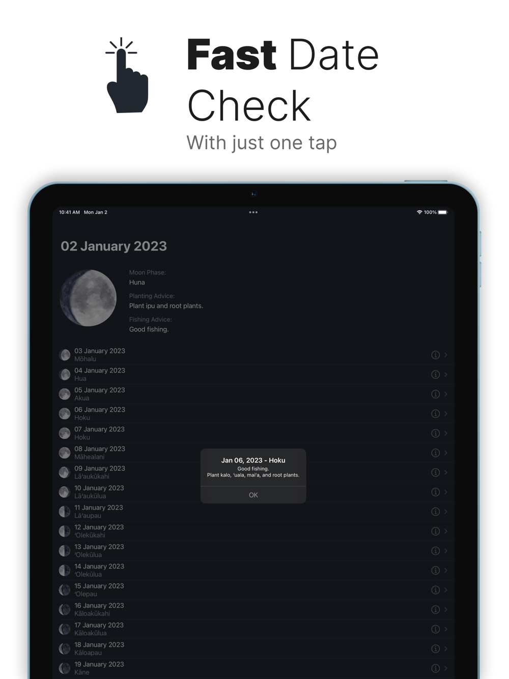 Mahina gives you daily updates on the current moon phase and what planting and fishing advice is most advisable by Hawaiian traditions.