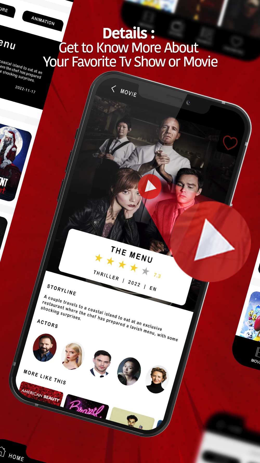 Introducing the ultimate movie and TV show companion app! With our app, you can access detailed information about your favorite movies and TV shows, including cast and crew, ratings, and reviews. Create your own watchlist and never miss an episode again. Search for new movies and TV shows to discover hidden gems. And with our cutting-edge AR technology, you can even watch trailers in an entirely new way.
