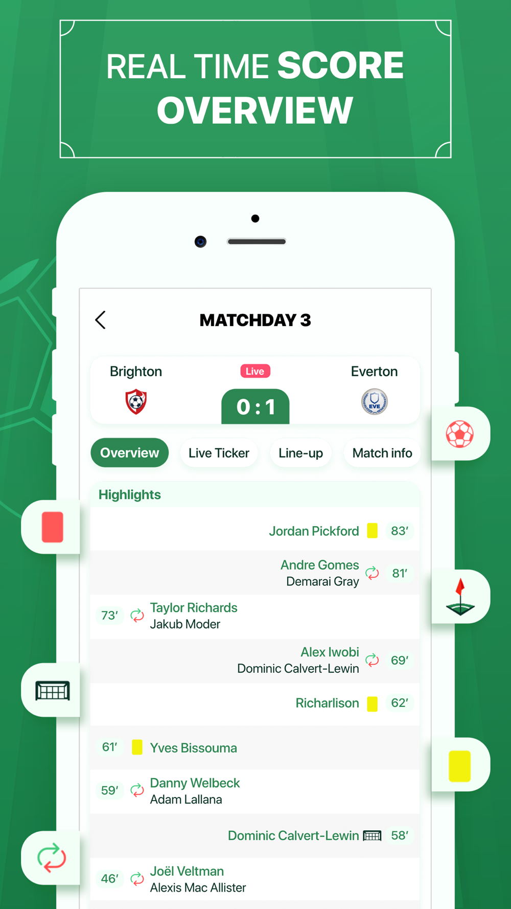 We are user-friendly and therefore focus on the most important information. In addition to the live scores, you will also find other practical features such as the line-up, goal scorers and interesting live statistics.