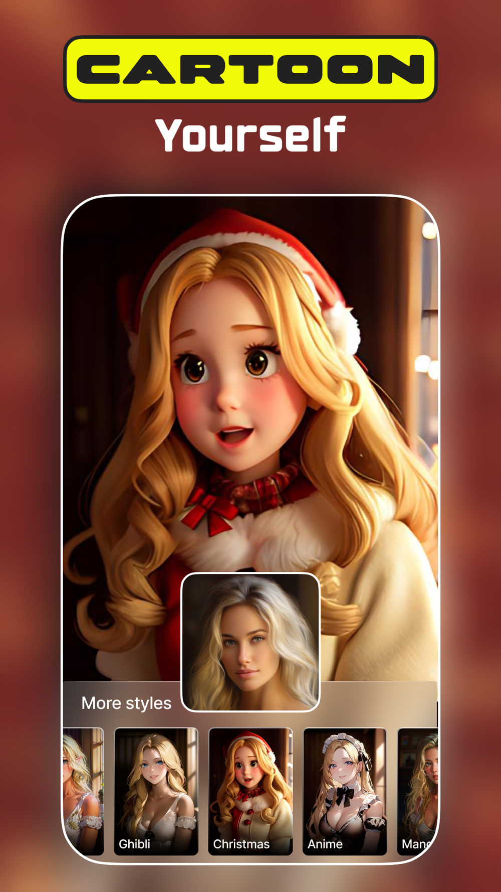 Whether you want to see yourself as a cartoon character, a princess, or an anime hero, Restyle makes it easy to explore different fandoms and bring your imagination to life.