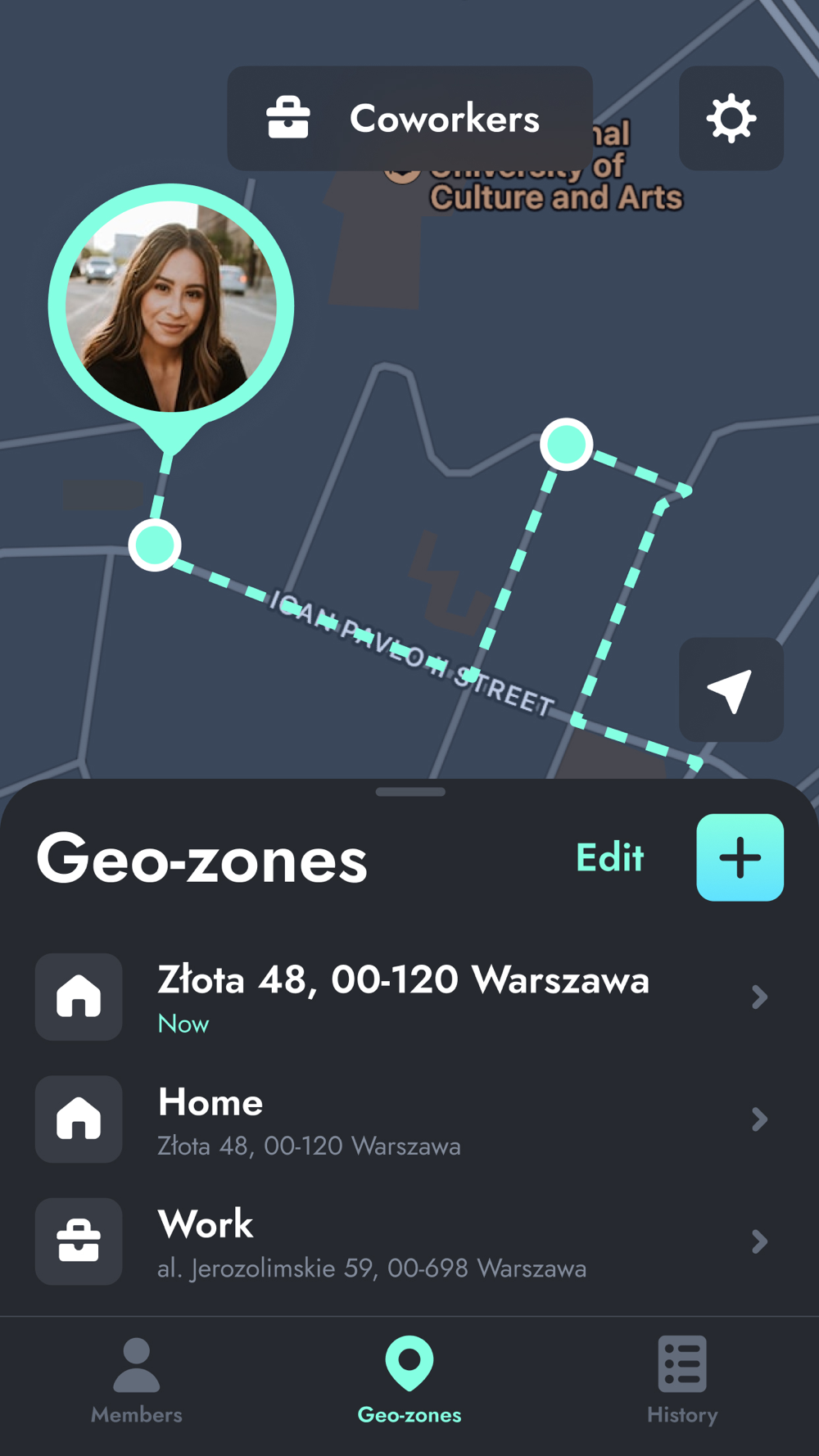 The app also includes geofence zones, which allow you to know when any of your circle members enter or leave a certain area by creating a location-based boundary. You can drop a pin on the map to set the center of the geofence at a specific location, name your geolocation, set the radius for it, and get push notifications when someone enters or exits it. This feature can help you ensure that your loved ones are safe by automatically letting you know their whereabouts, without any effort from them.