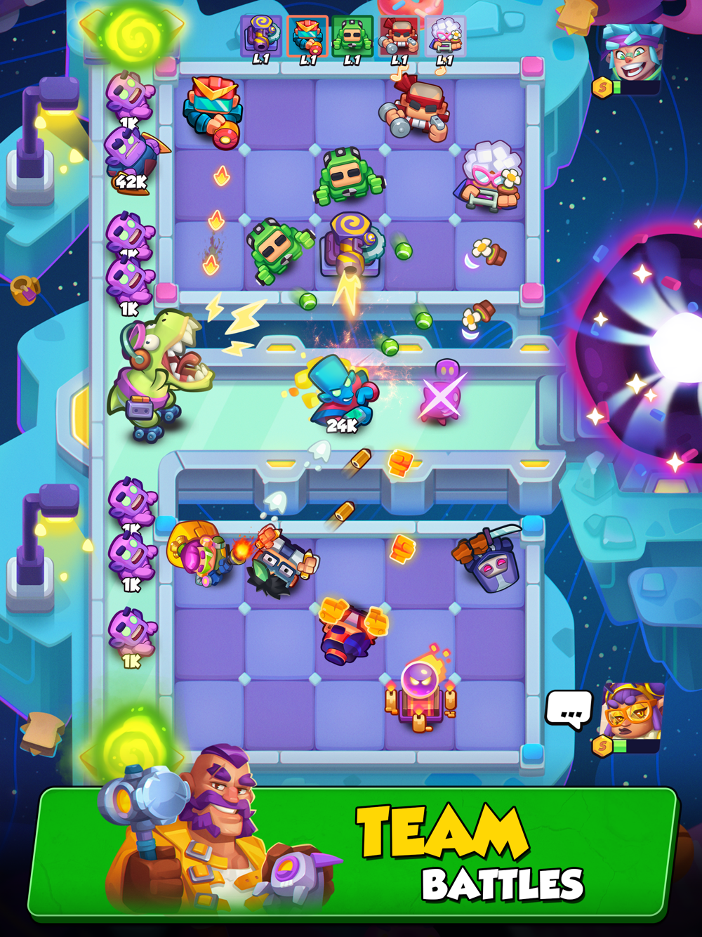 Energy is generated by mini gadgets, crazy inventions, and even supermutations. That’s just fantastic! No two fighters are the same, each having their own role and strengths! Gather, unite, and upgrade your heroes to stand alone as champion!