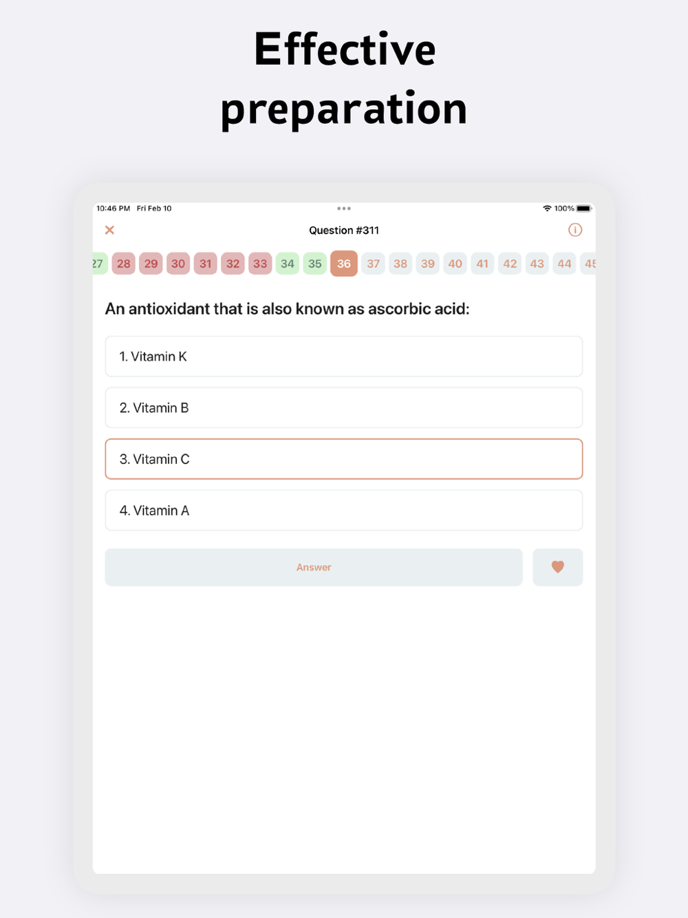 - Exam Mode that simulates the real test, helping users gauge their readiness.
