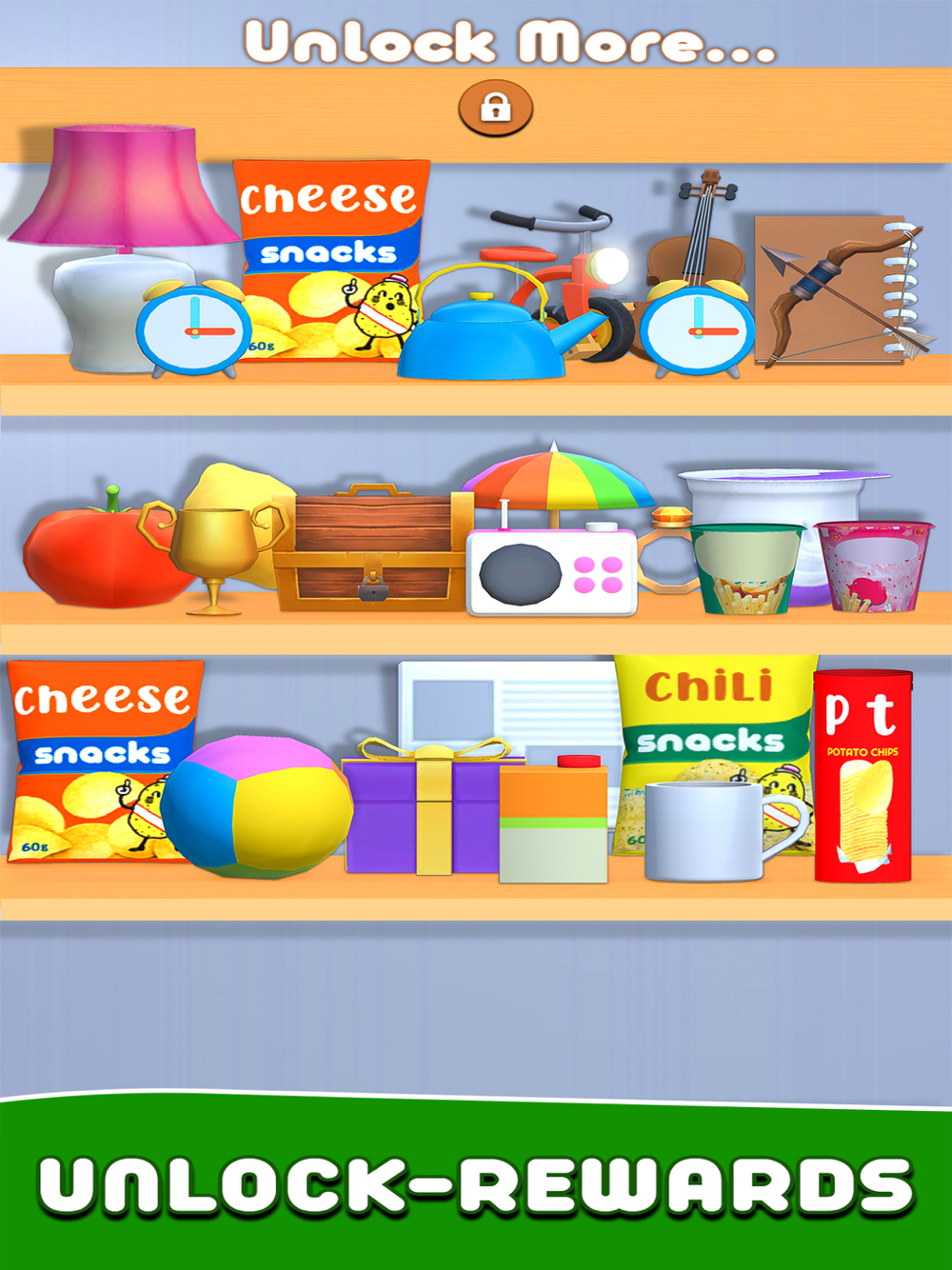 You need to match 3D objects on the ground and pop them all! When you clear a level, you will find new objects to pair. Sort and find all pairs, clear the board, and win!