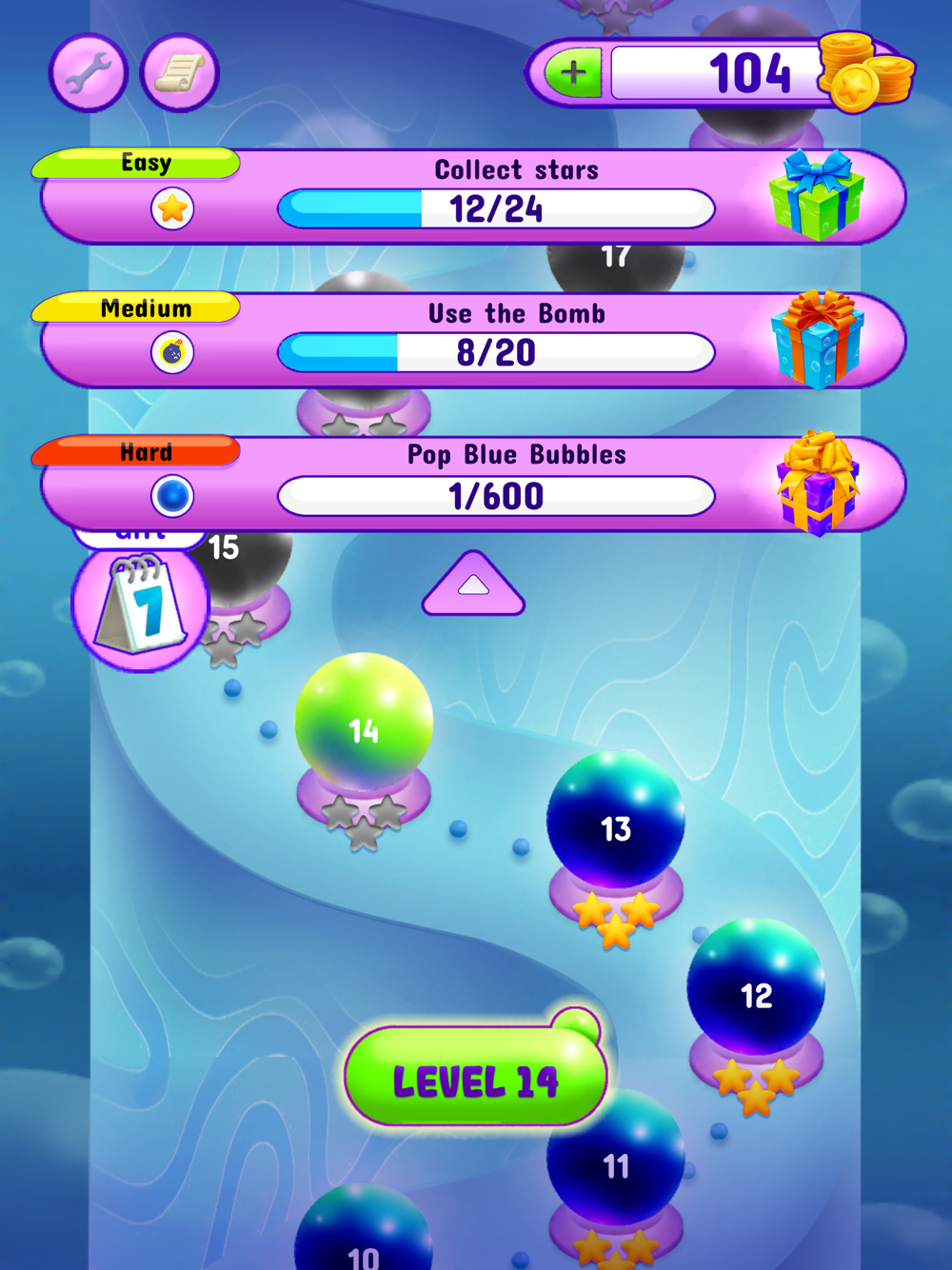 - Missions: pop the bubbles to complete the missions