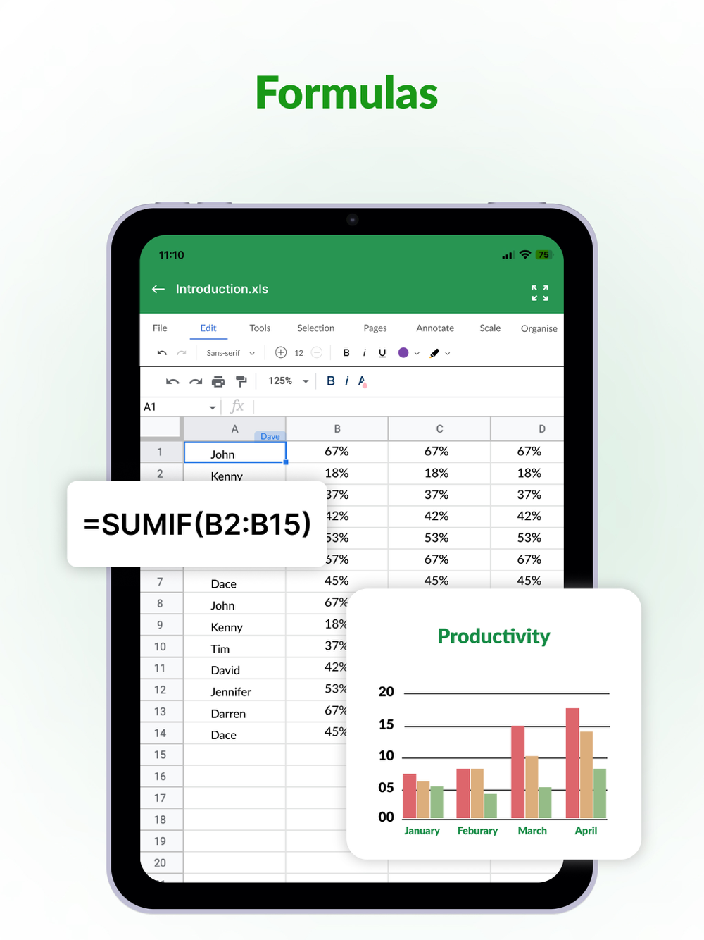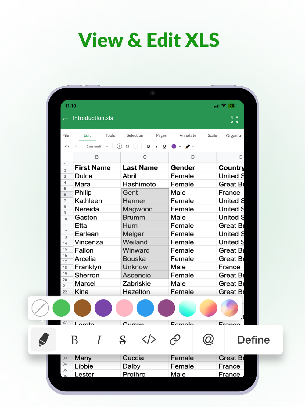 - Get a comprehensive suite of editing tools that enable you to make precise changes to your spreadsheets.