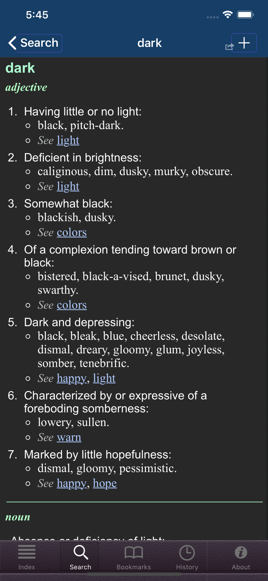 This application brings the full "Roget's II: The New Thesaurus" to your fingertips.