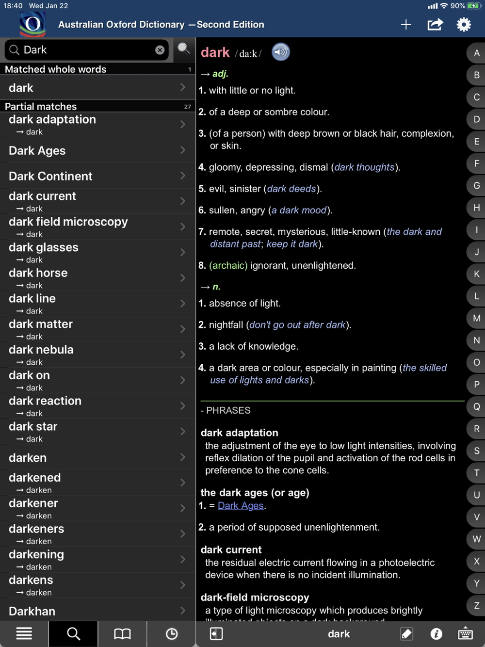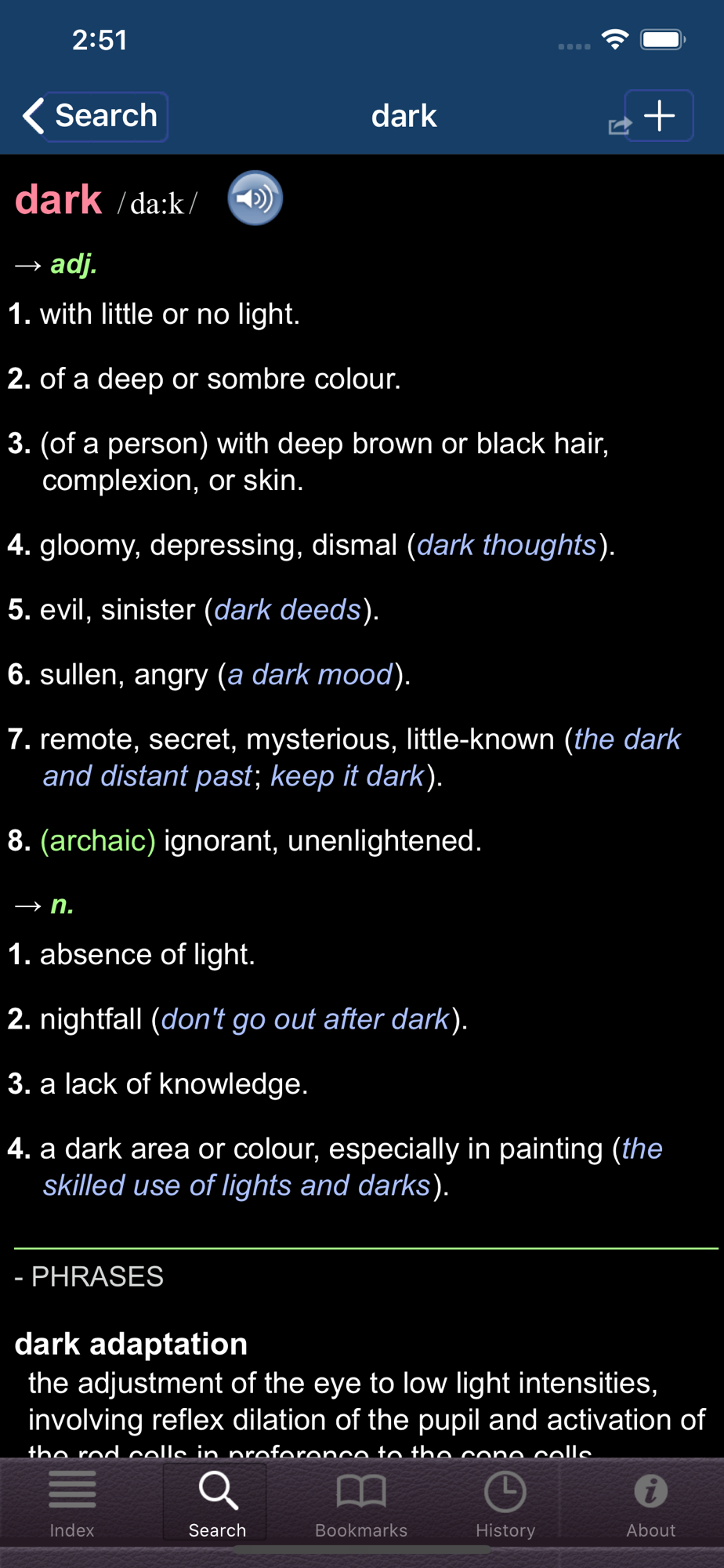 • fallback online search for esoteric or archaic words and international slang