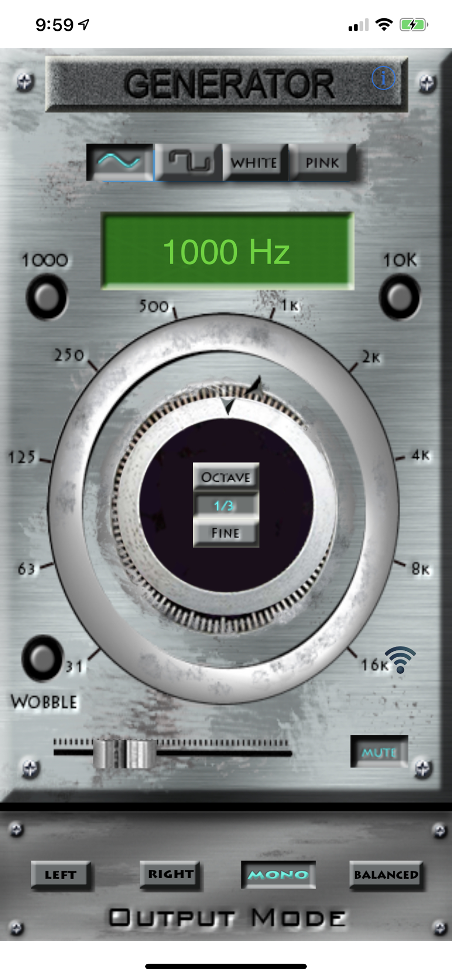 Now you can have a professional grade signal generator for your iPhone. Create sine waves, square waves, white noise, and pink noise.