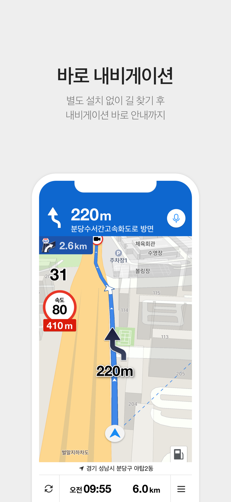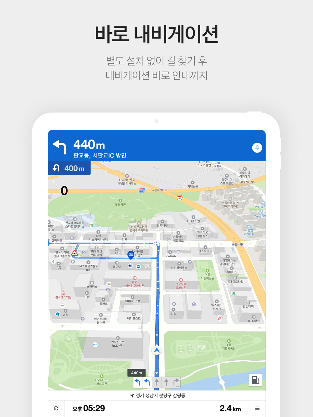 No need to install a separate navigation app. When you search for a route, KakaoMap will give you navigation directions right away.