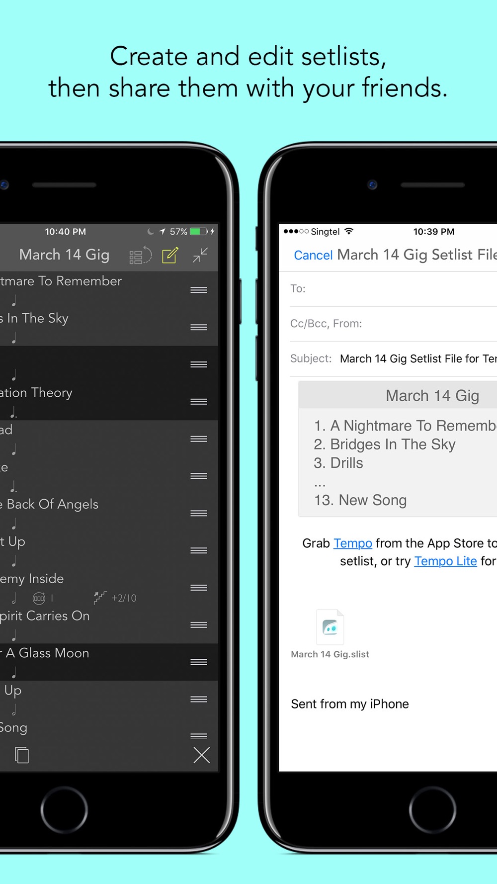 • Control setlists, tempo and playback with AirTurn, iRig BlueBoard, PageFlip Cicada, headphones remote and other accessories