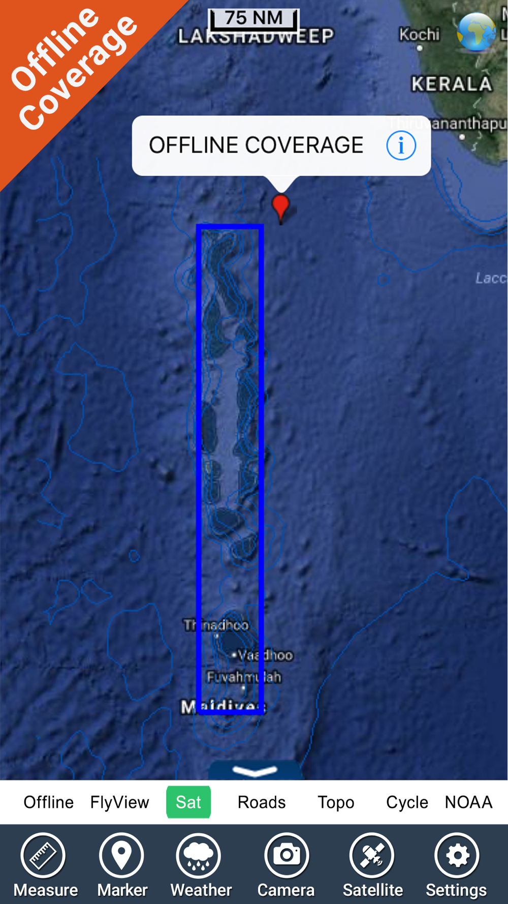 Maldives- The whole coverage resident in the app. It works WITHOUT mobile coverage!