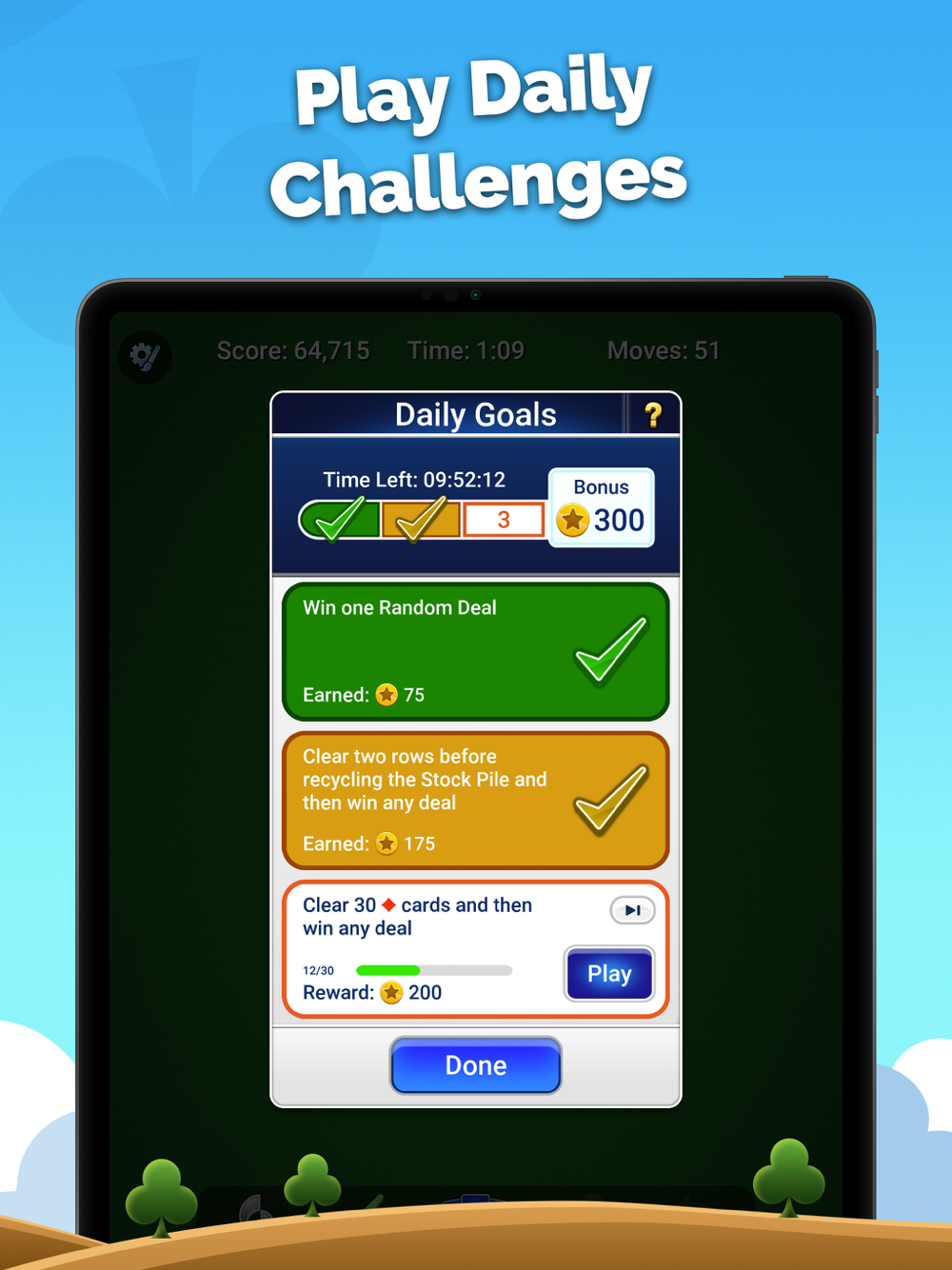 Pyramid Solitaire Subscription is an optional subscription that gives you access to seamless play without any ads, the ability to play future Daily Challenges and exclusive themes.
