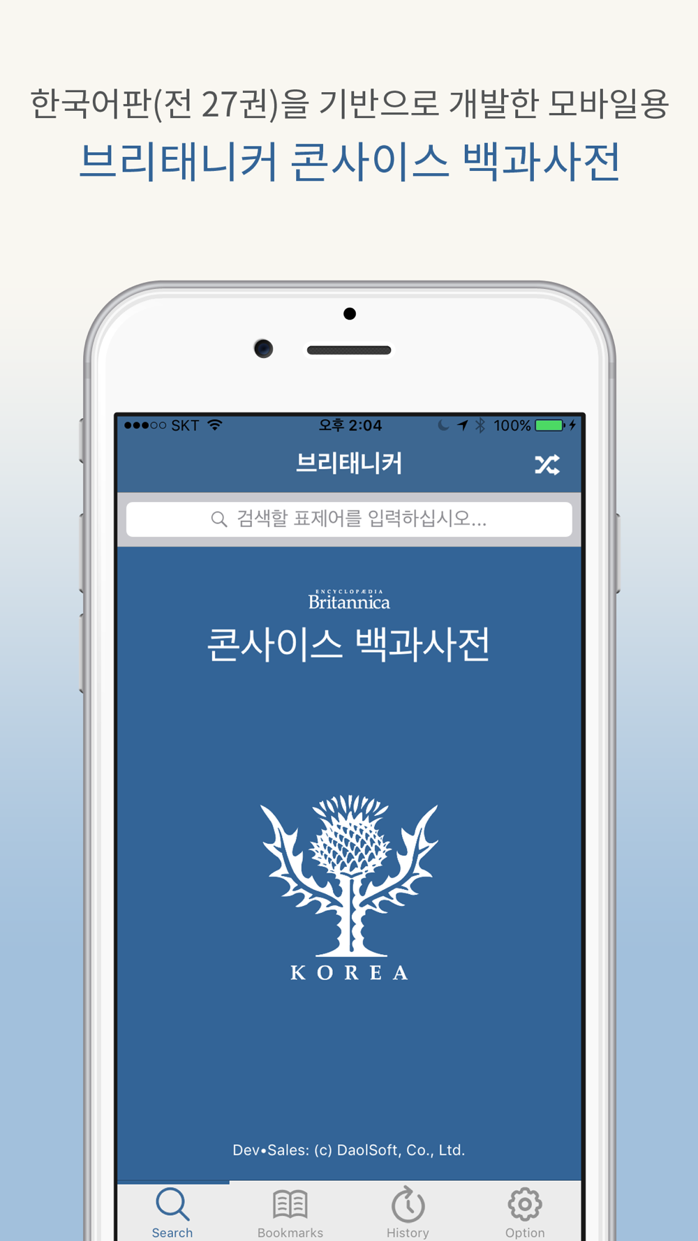 "Britannica Concise Encyclopedia" is the special edition for mobile of Korean Britannica Encyclopedia. It is developed based on "Britannica World Encyclopedia" Korean Edition that consists of 27 volumes. Enjoy the extensive world of knowledge through "Britannica Concise Encyclopedia" that contains concise and compact explanation, broad and in-depth comments, and overall human knowledge ranging from human history to current issues.