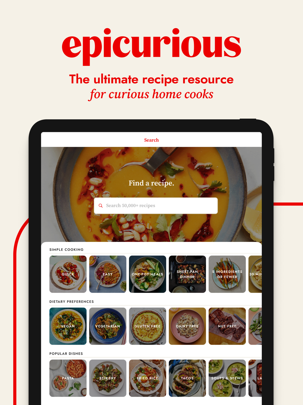 Discover more than 50,000 recipes from the biggest names in cooking — including Epicurious, Bon Appétit, Gourmet, HarperCollins, and more — with the new Epicurious app. Reimagined, redesigned, and ready to help you find recipes that you’ll love to cook and share, the new Epicurious app is the sidekick you need to be a hero in the kitchen.