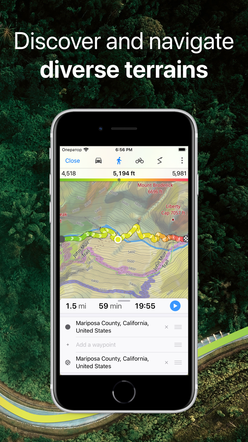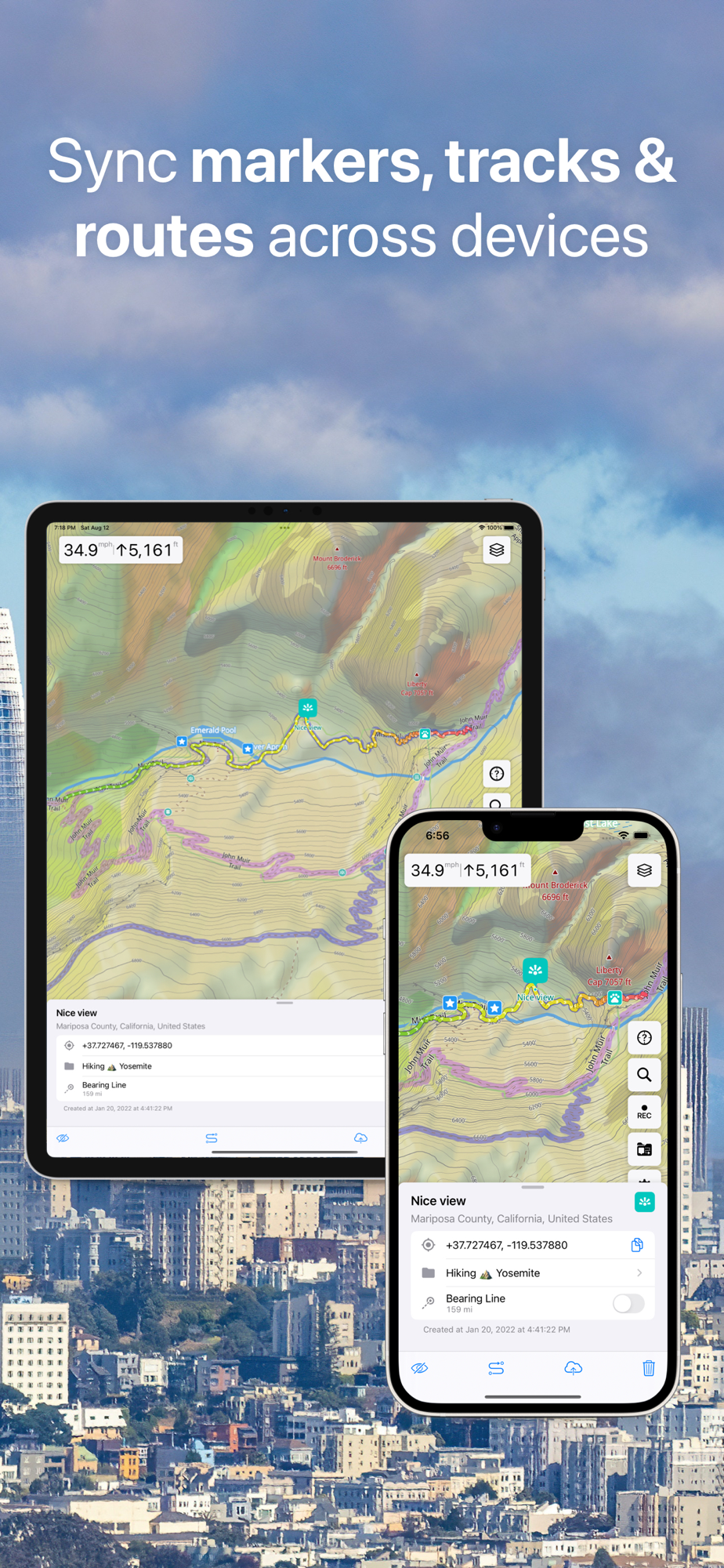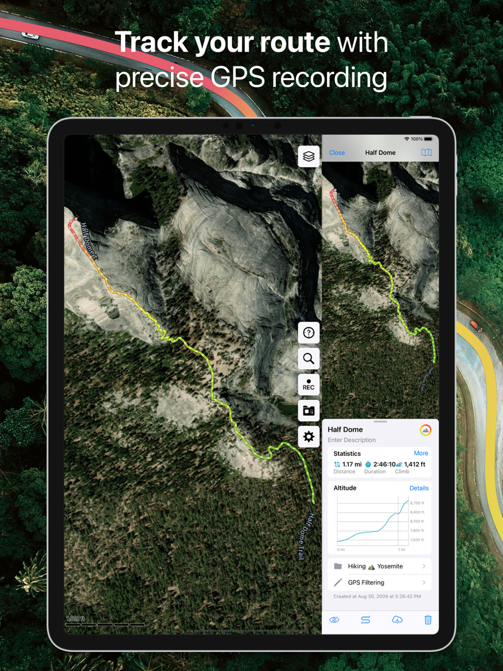 • Monitor your real-time speed, distance, and time traveled, as well as altitude right on the map during the trip.