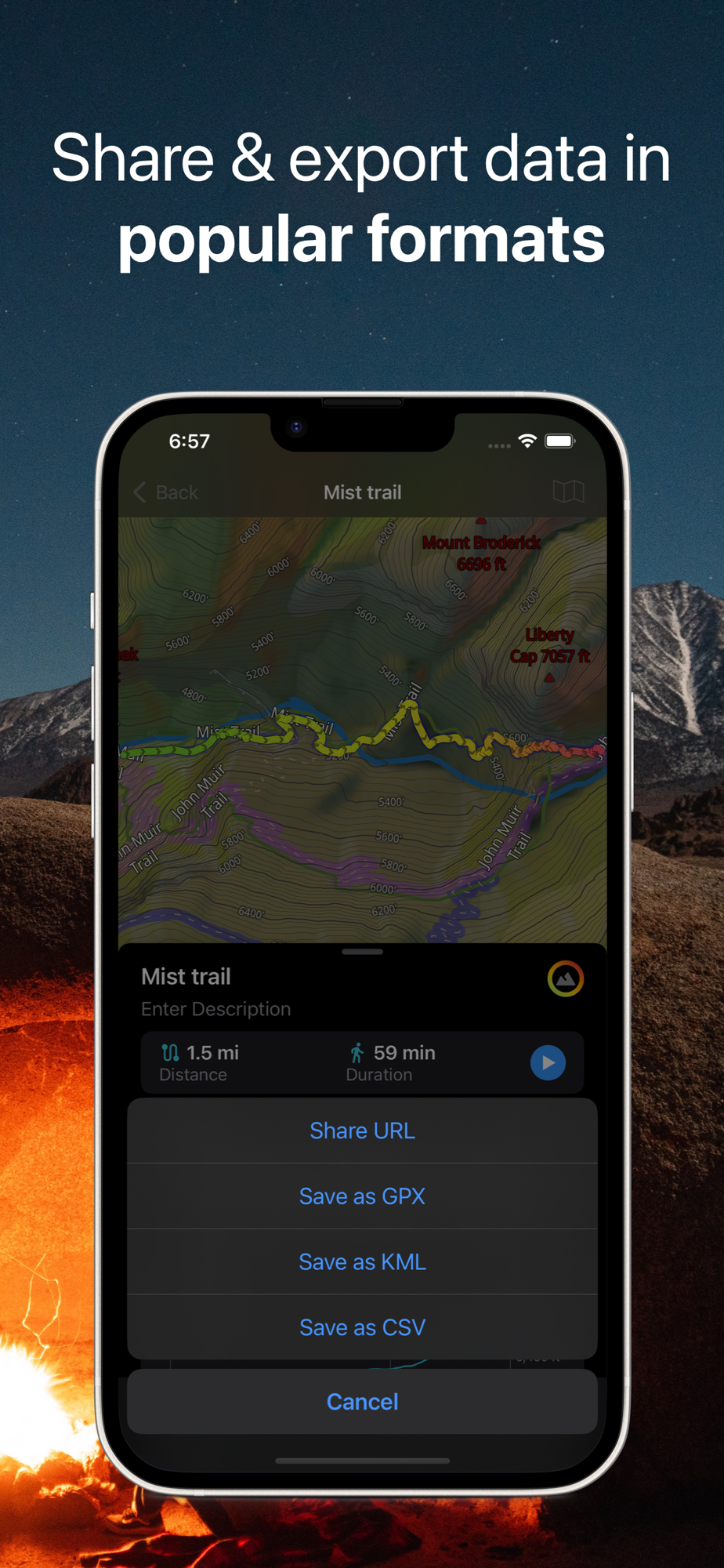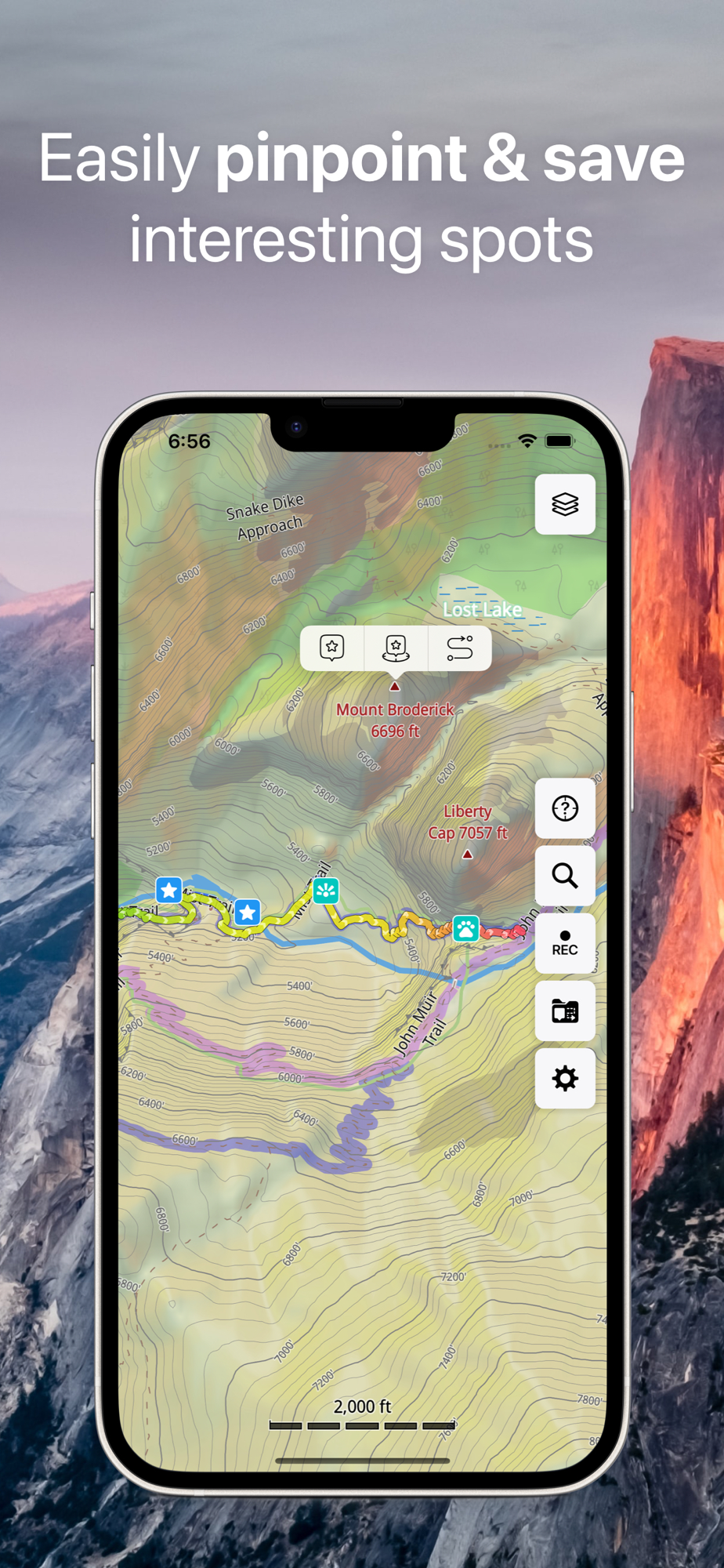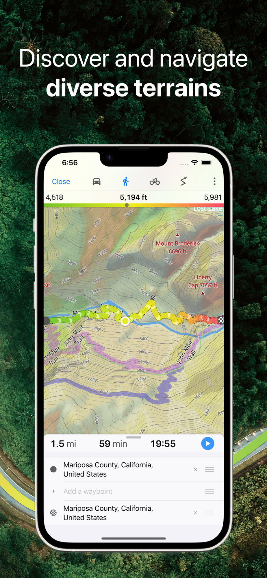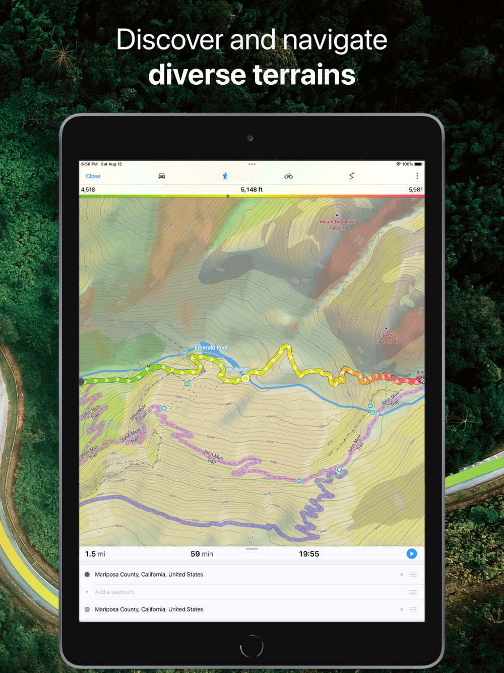 • Monitor your real-time speed, distance, and time traveled, as well as altitude right on the map during the trip.