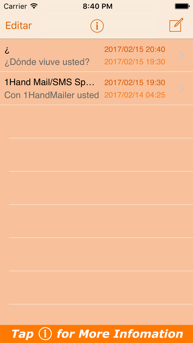 *“Ocultar(Hide)” button to hide the keyboard for better view of longer messages