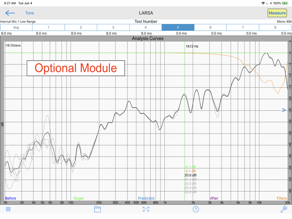 We test every iOS device and calibrate the microphone level and frequency response for the best results. We have the ability to turn off the Apple low frequency filters, and on many devices we can measure up to 120 dB SPL.