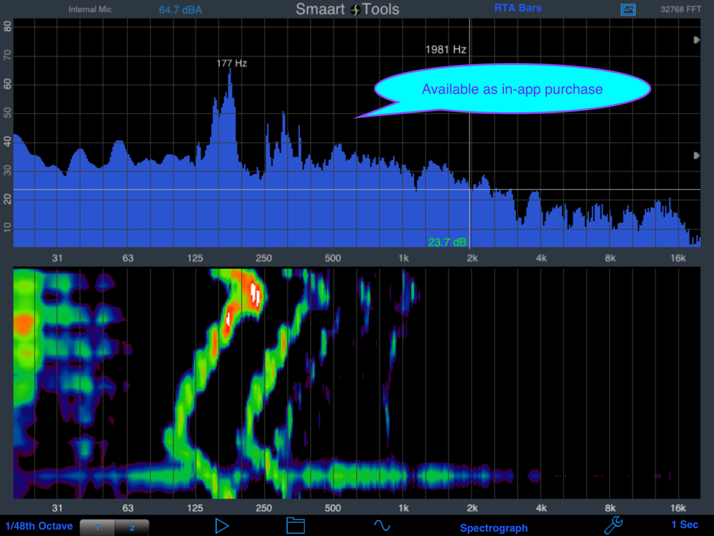 The power of Smaart® on a mobile platform. Includes RTA graphs to 1/48th octave and Spectrograph. Split-screen on iPad.
