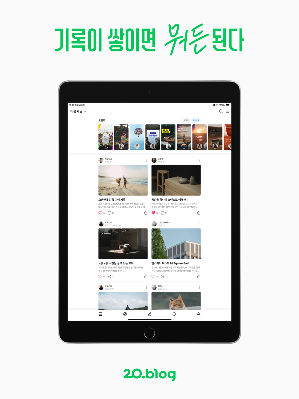네이버 블로그 모바일 애플리케이션으로 언제 어디서나 포스트를 쓰고, 이웃의 소식을 확인할 수 있습니다.
