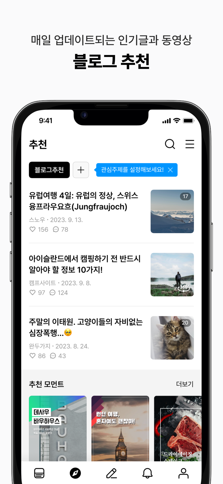 블로그 홈의 추천글로 관심 있는 블로그를 새로 만나고, 이웃을 맺을 수도 있습니다.