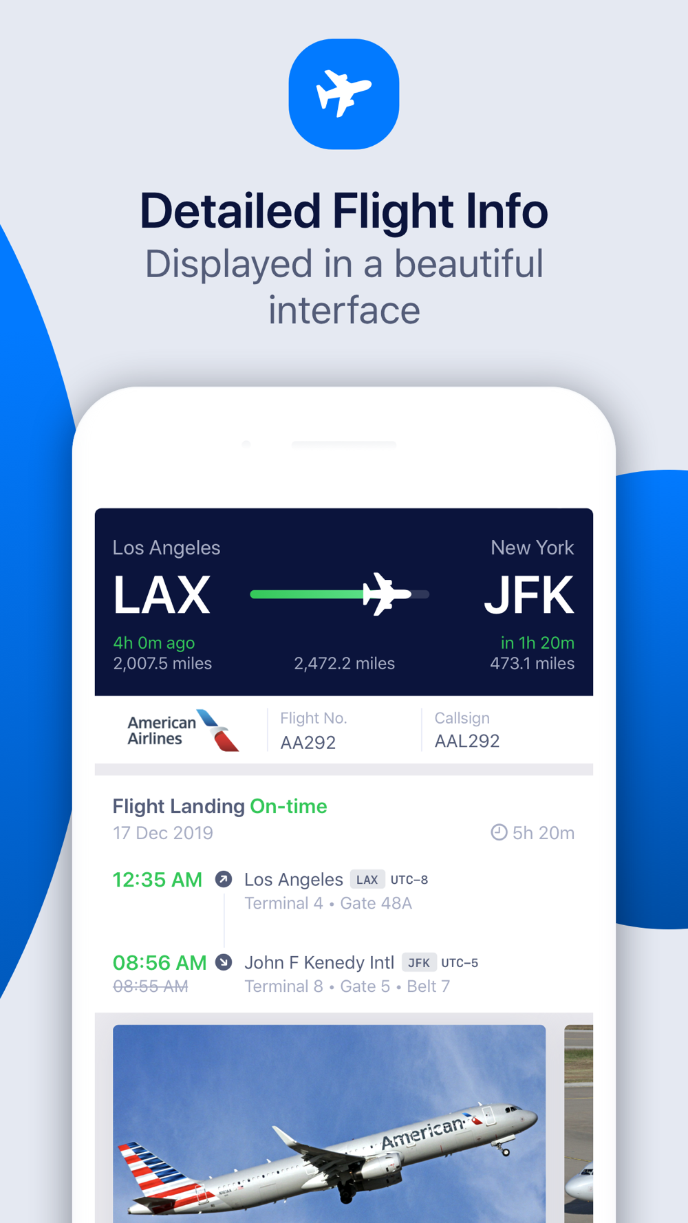 • Get an instant notification when a flight takes off or is near landing using alerts
