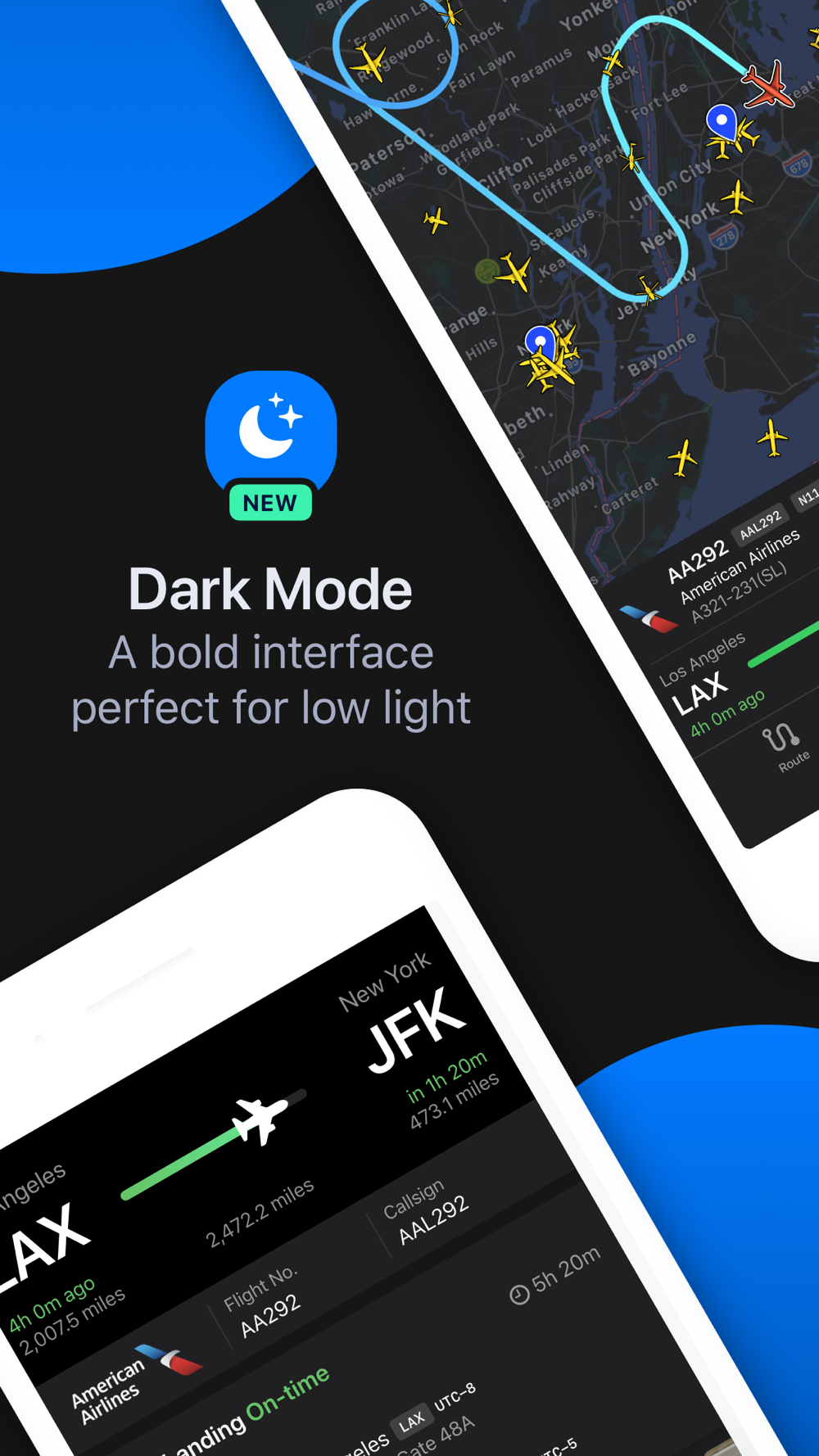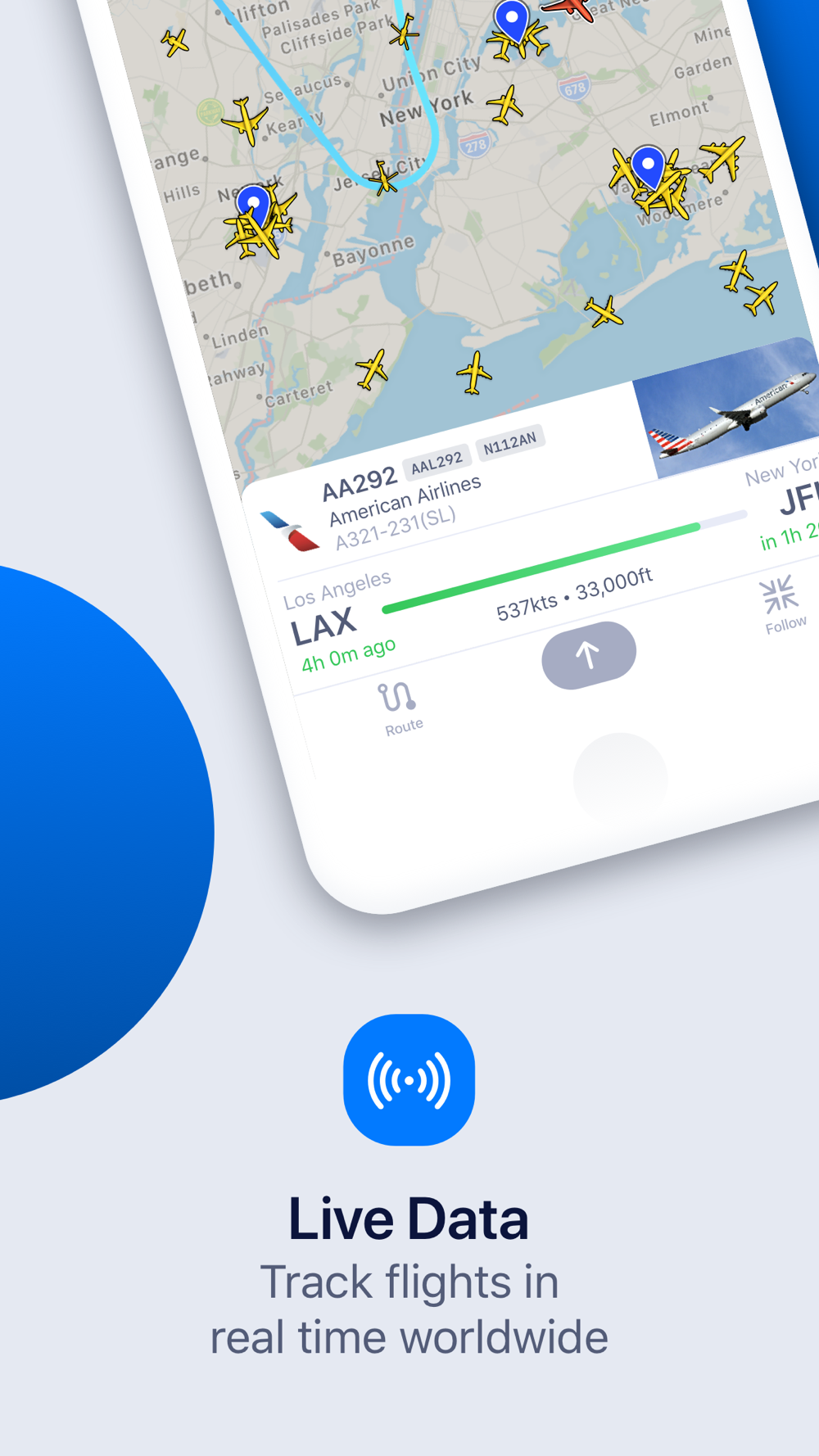 • See live air traffic patterns and track flights in real time on a detailed map.