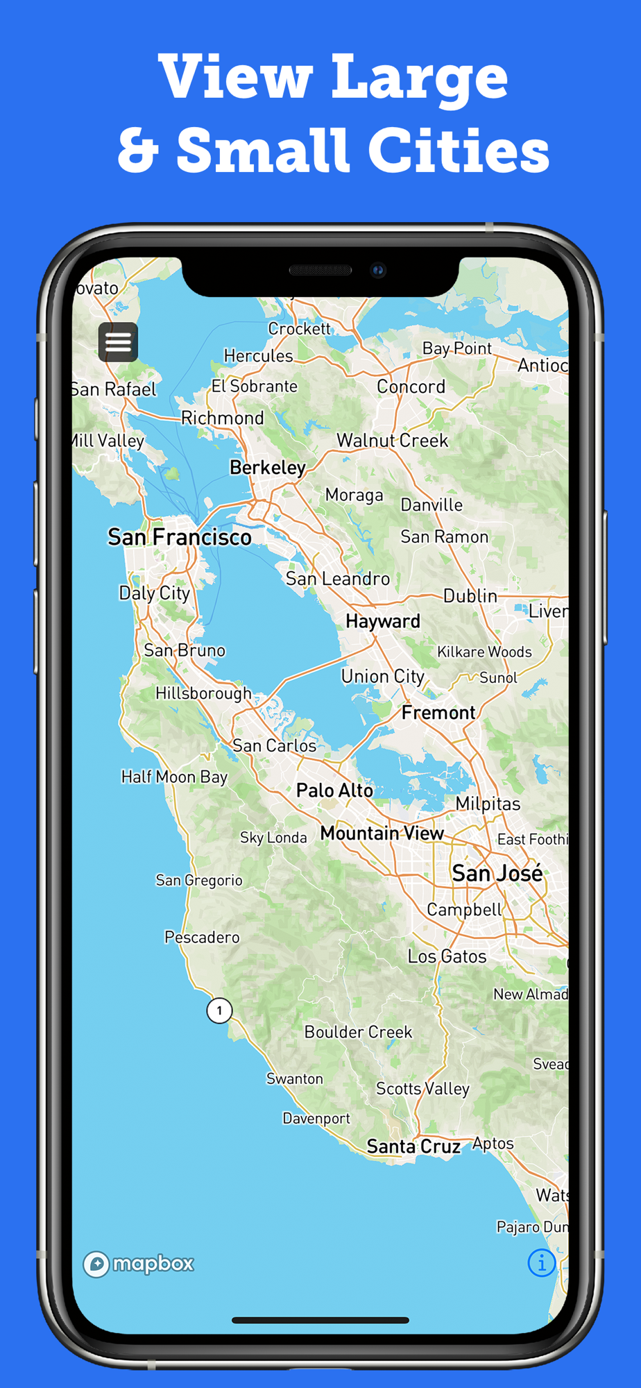 * Easy map switching. Touch the top left corner of the screen to switch between maps.
